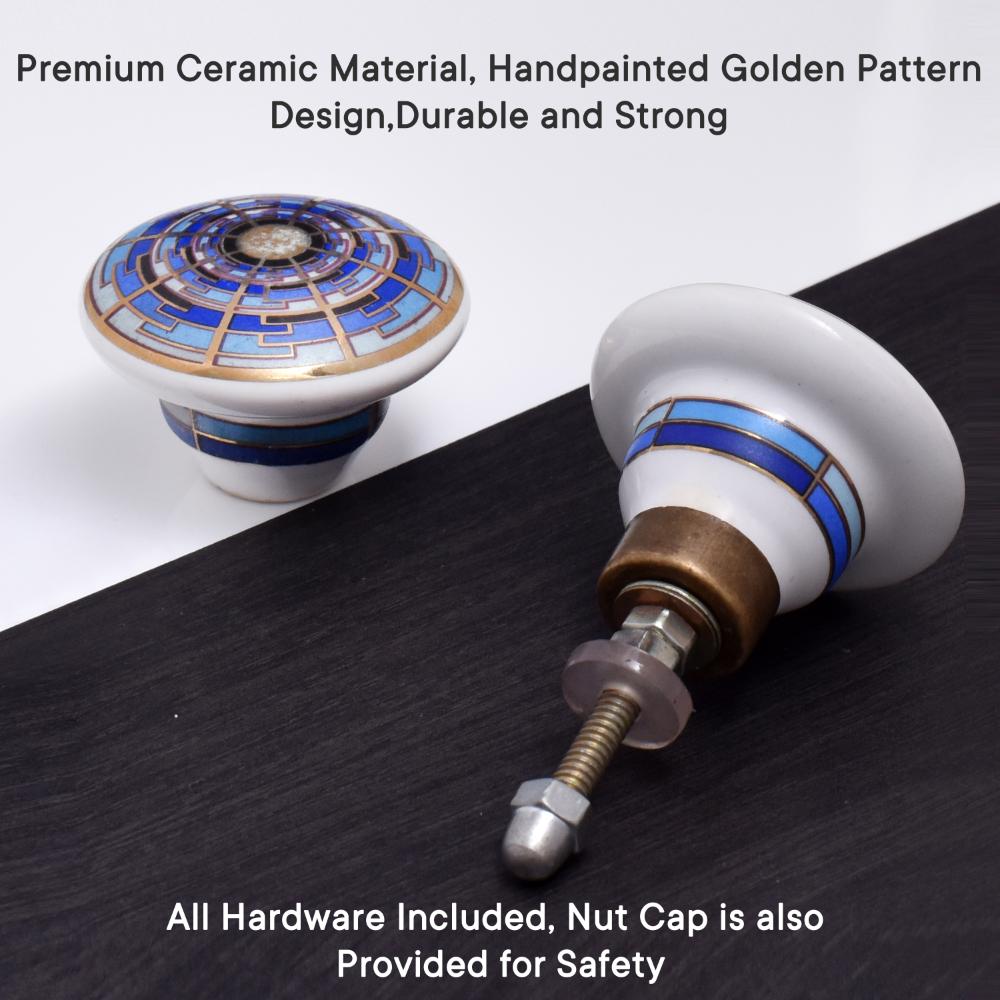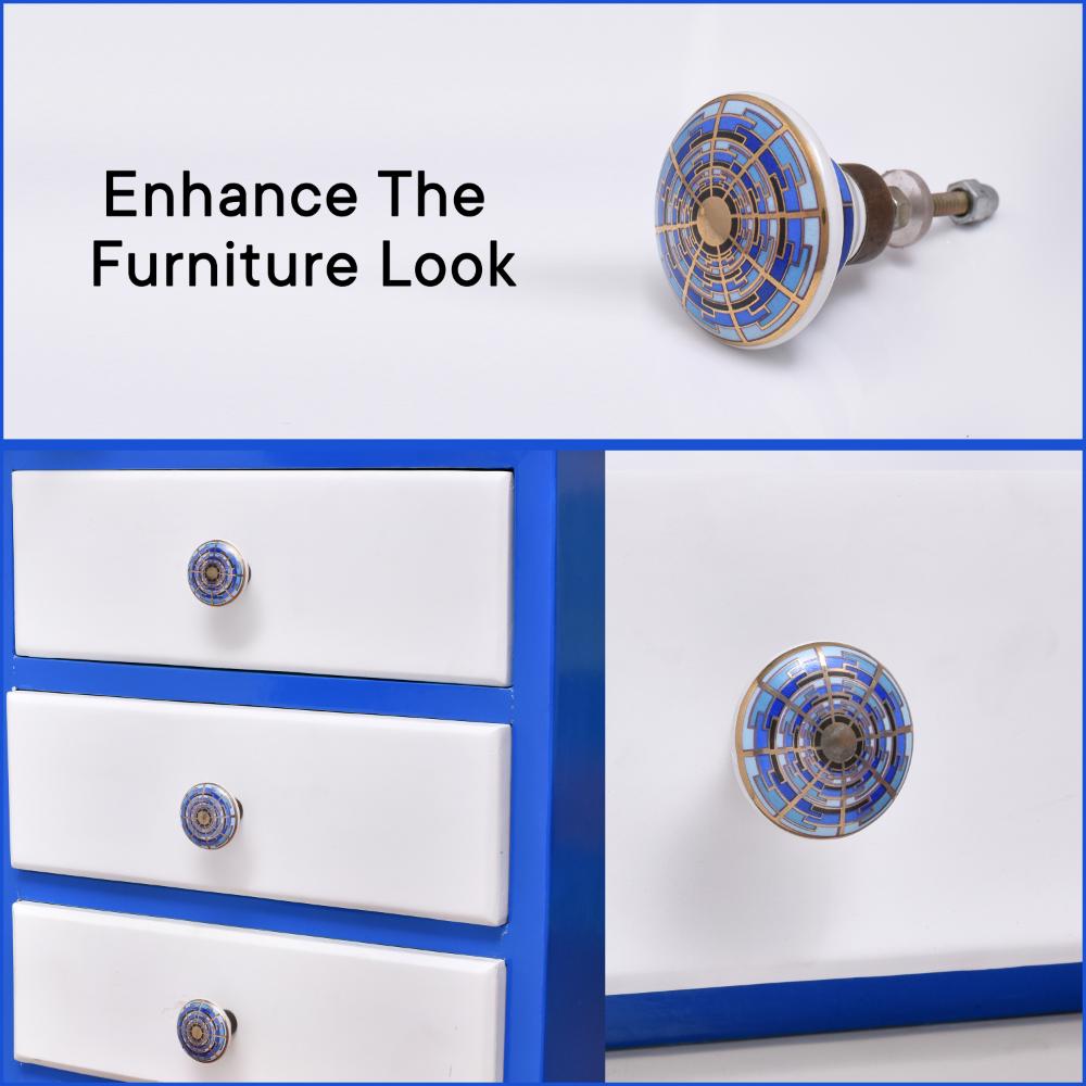 Upgrade your furniture with the Blue Sapphire Hue Golden Pattern Ceramic Dresser Knobs. Their stunning color combination, intricate design, and high-quality ceramic construction make them a beautiful and functional addition to any room in your home.