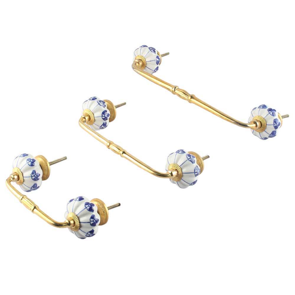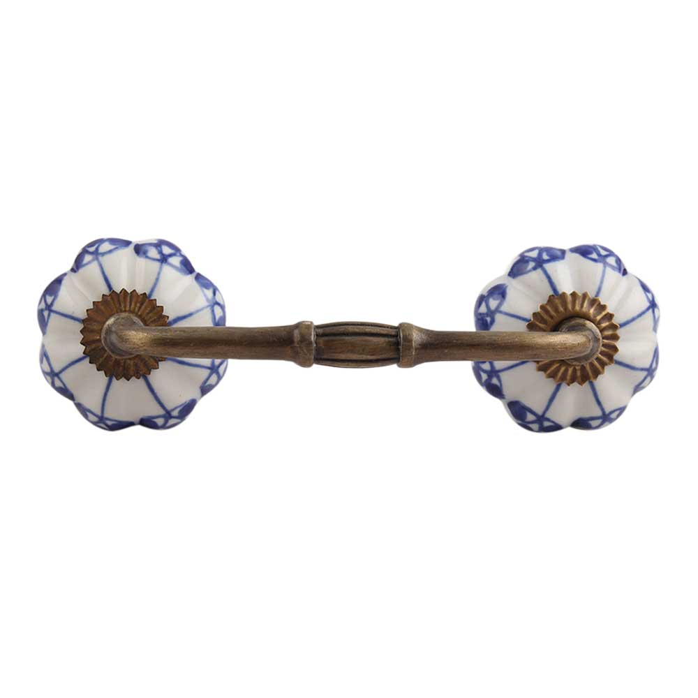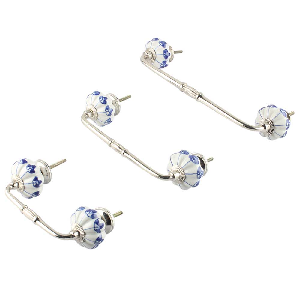 Blue Shamrock Ceramic Bridge Handle. Ideal for Drawer, Dresser, Cabinet, Wardrobe, Cupboard and Almirah.