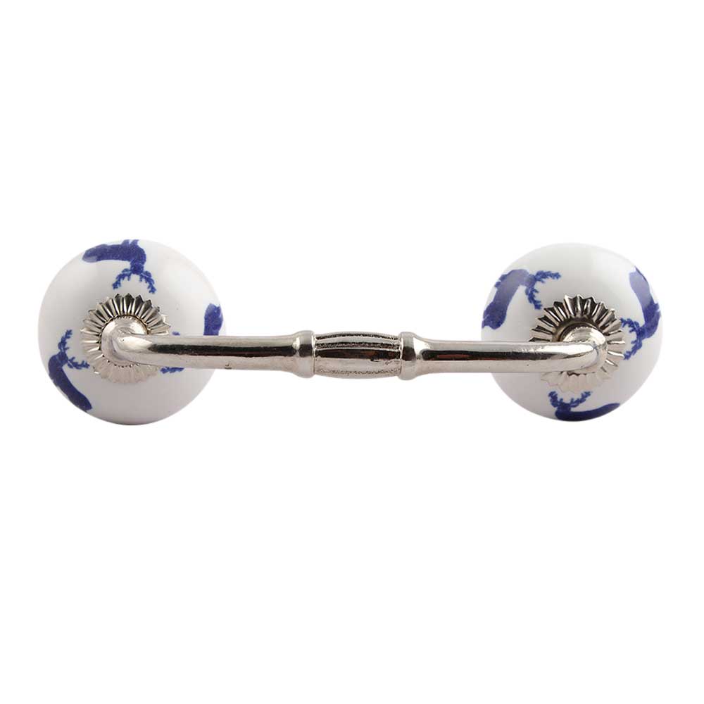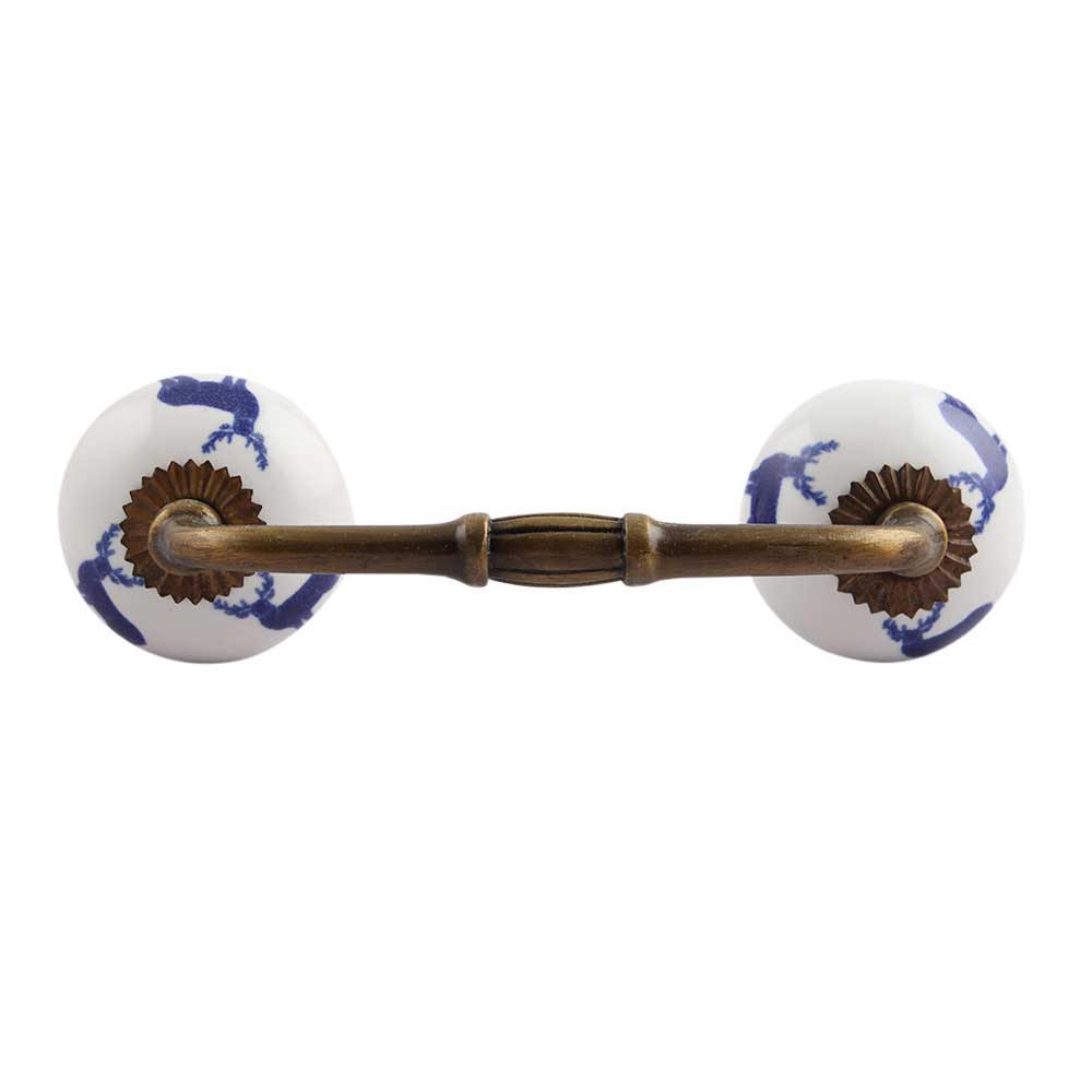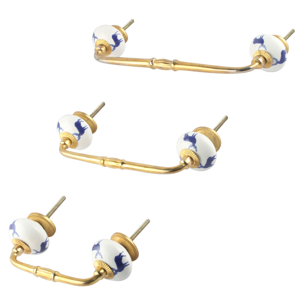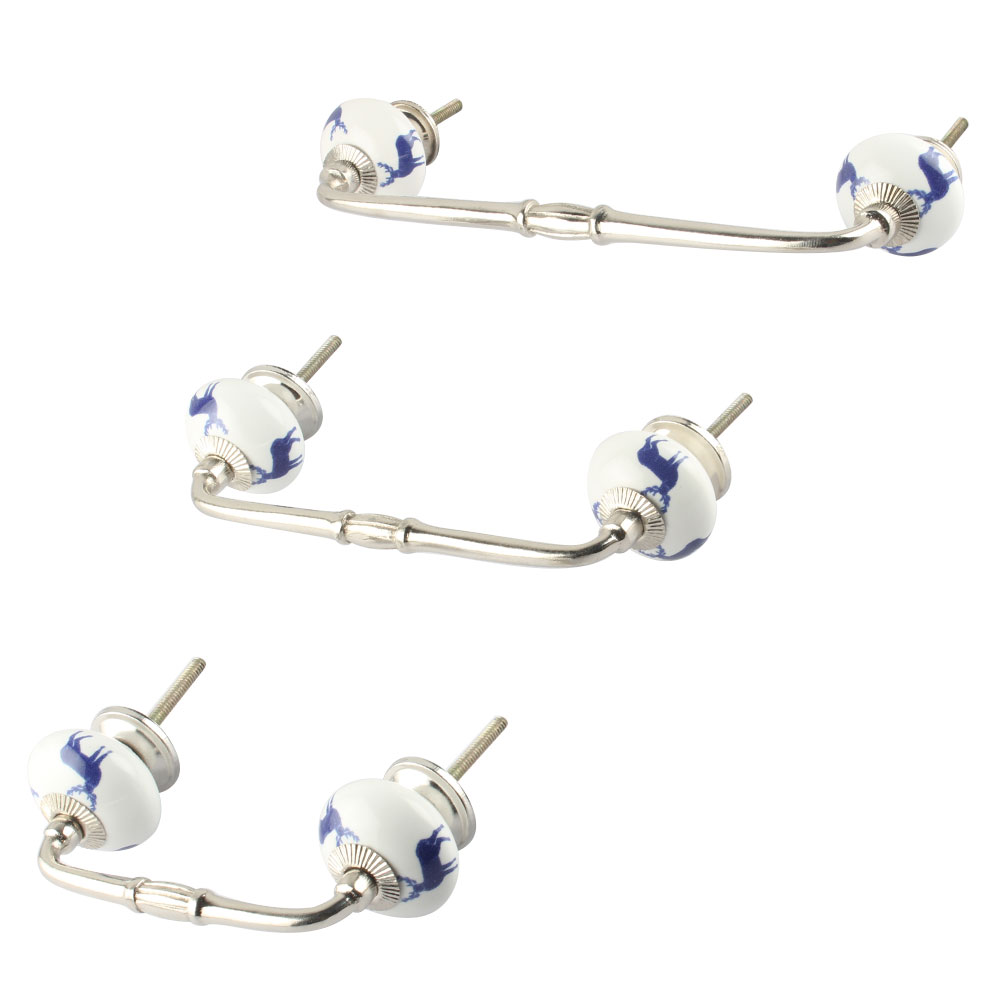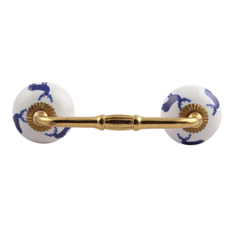 Blue Standing Rein Deer Pattern Ceramic Bridge Handle. Ideal for Drawer, Dresser, Cabinet, Wardrobe, Cupboard and Almirah.