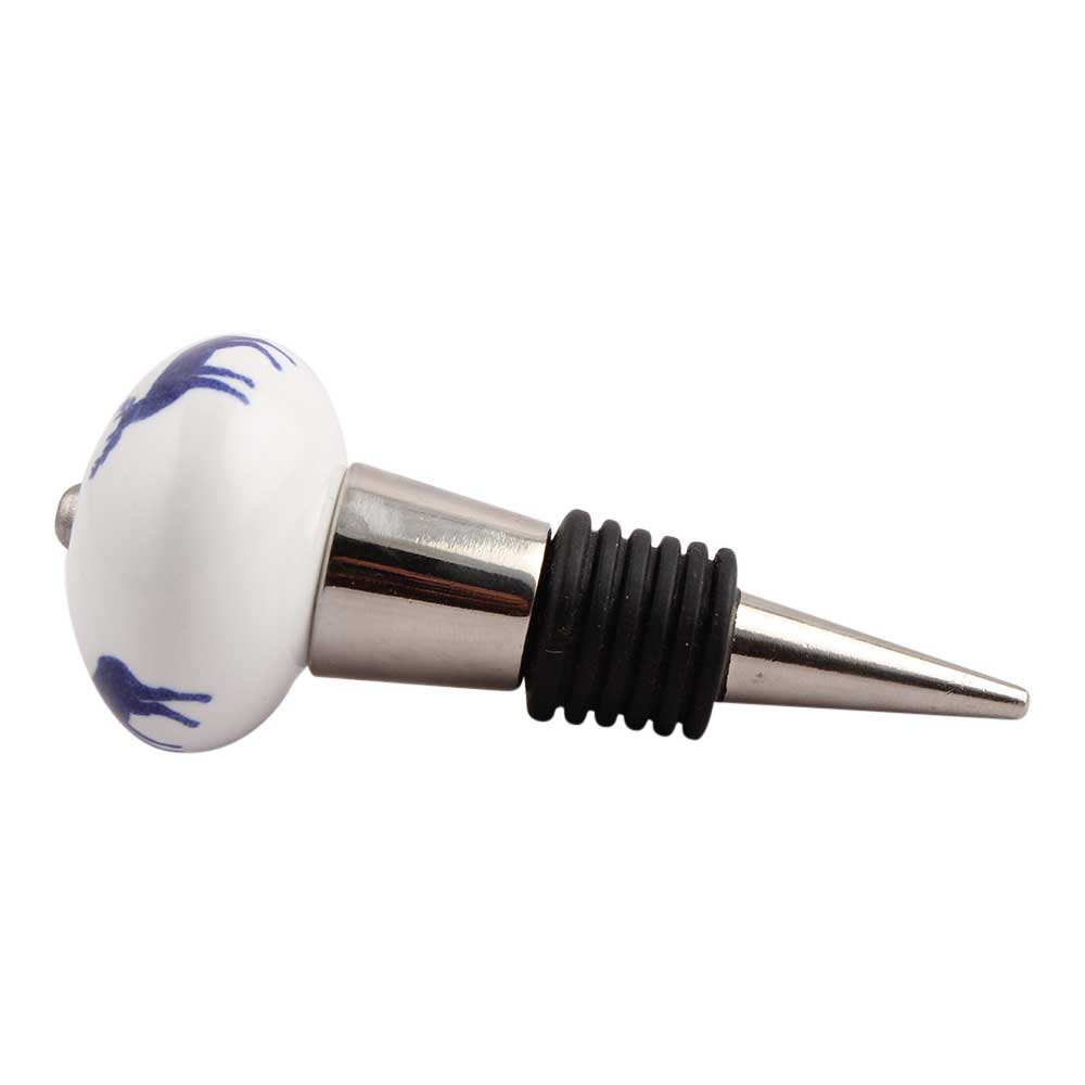 Blue Standing Rein Deer Pattern Ceramic Wine Stopper.zinc alloy wine bottle stopper with attractive Jute Bag Packaging.