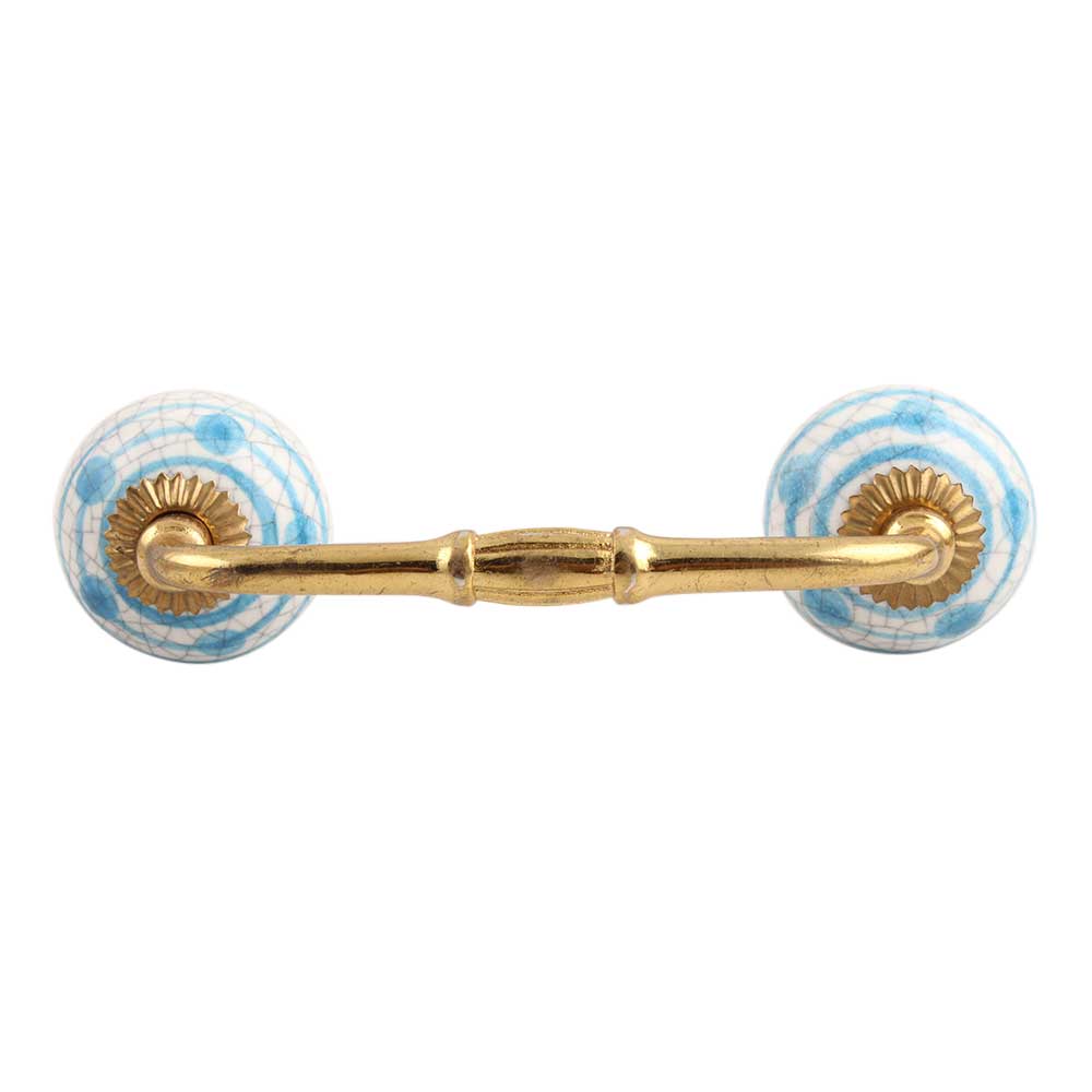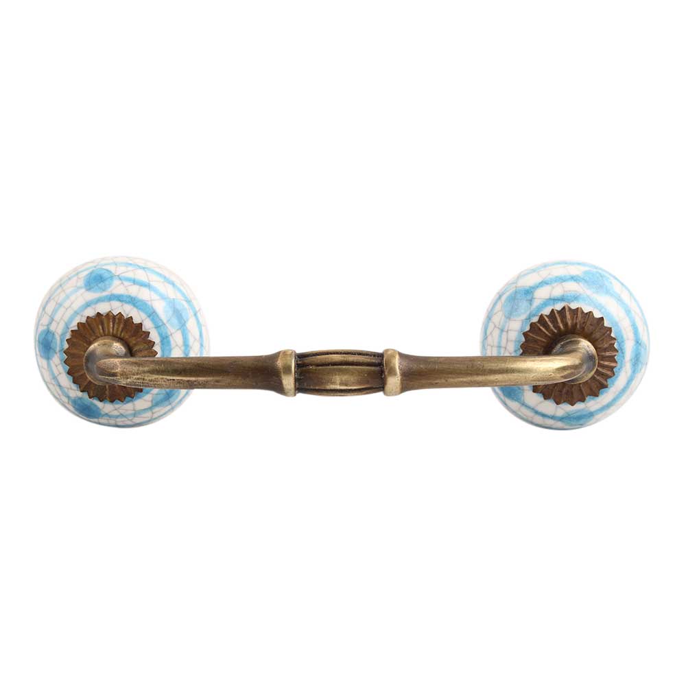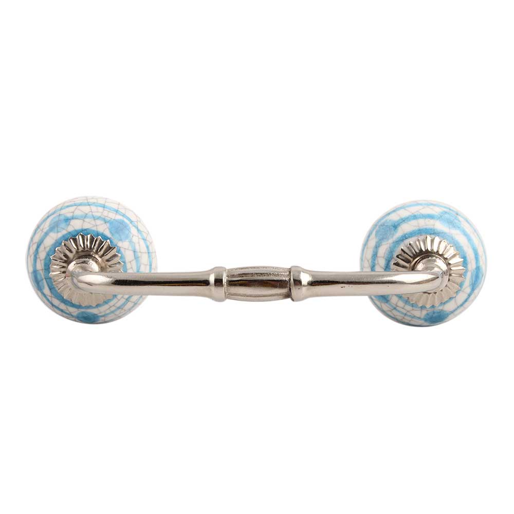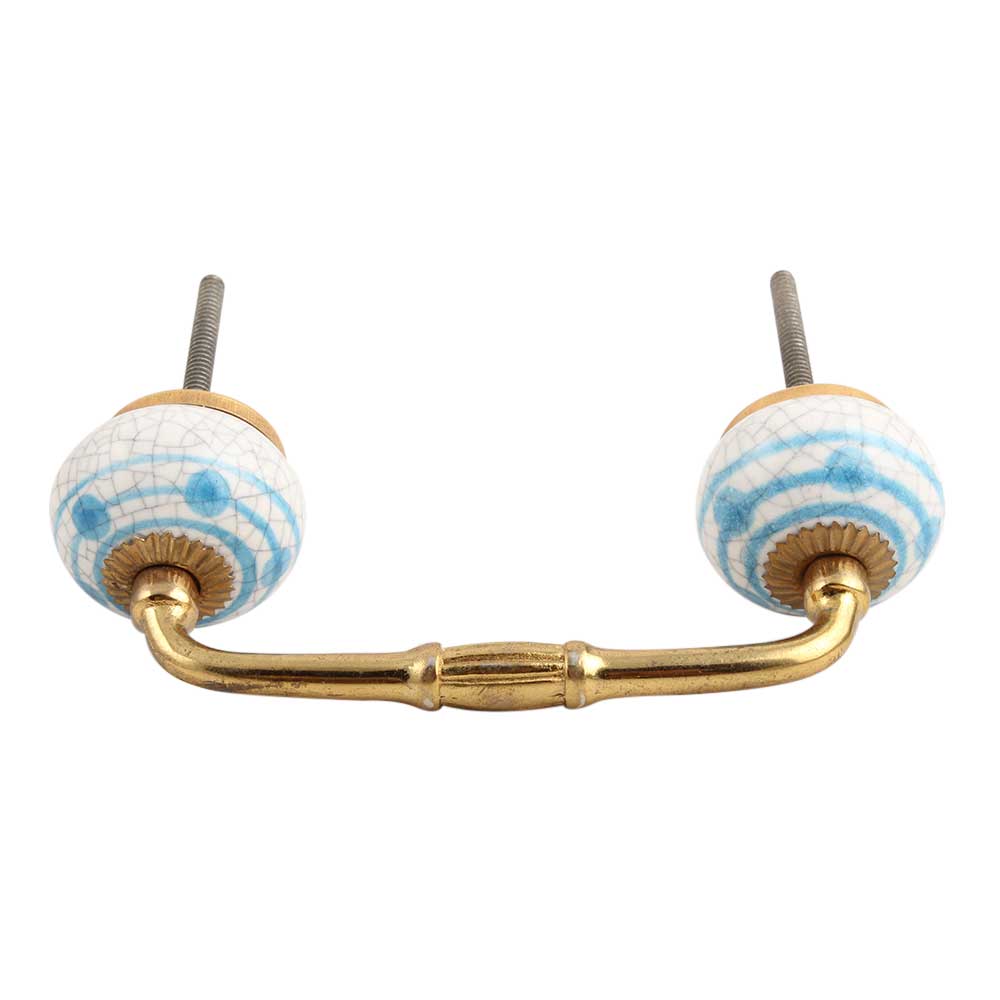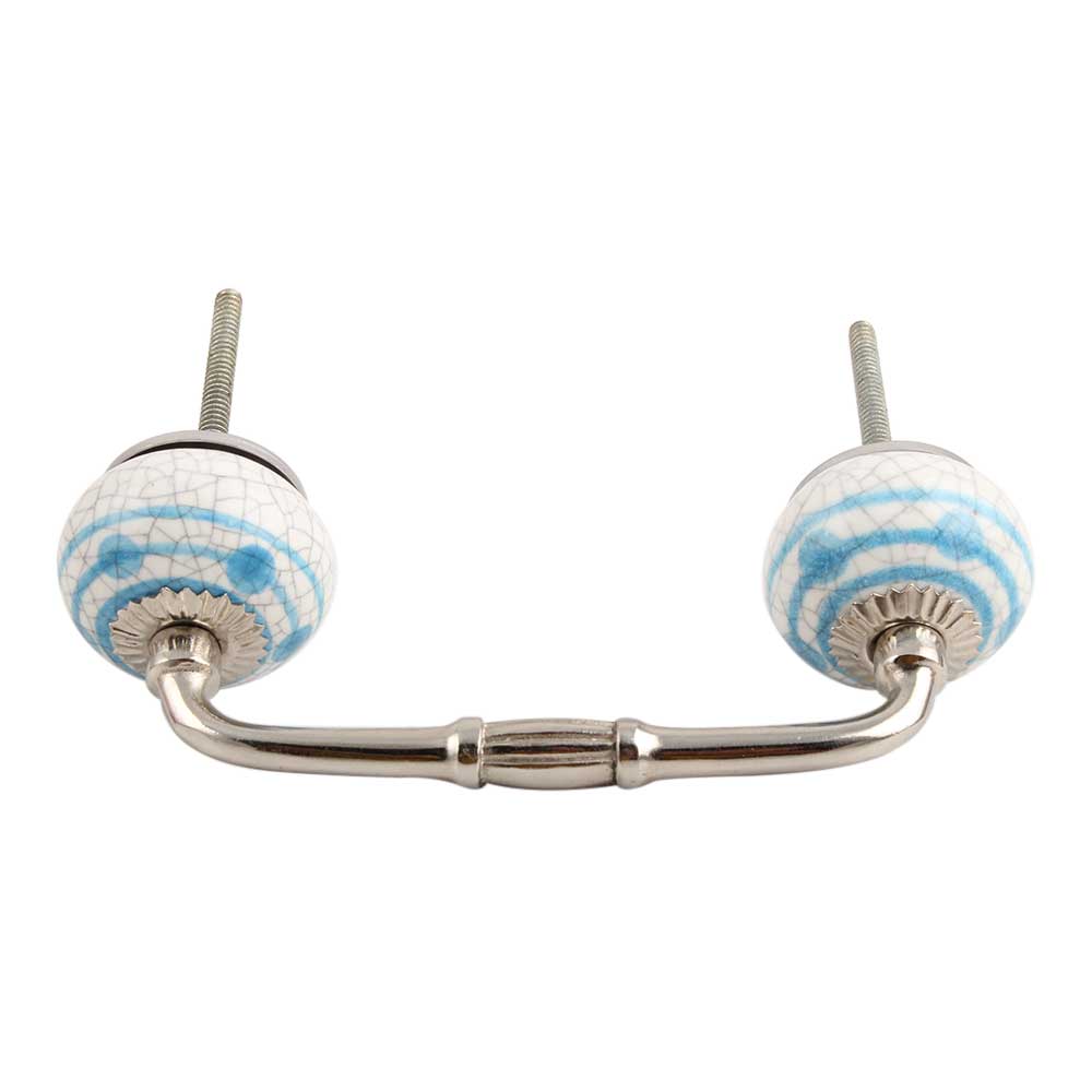Blue Striped Dotted Cackle Ceramic Bridge Handle. Ideal for Drawer, Dresser, Cabinet, Wardrobe, Cupboard and Almirah.