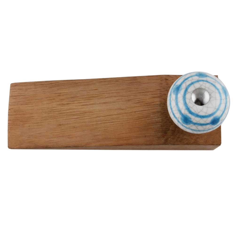 Handmade Ceramic and Wooden Door Stopper.Wooden Door Stopper with a Ceramic Knob to Carry it Easily. This Wooden Door Stopper has Glue Dots under it to Ensure that it does not Slip. It is Handmade by the Craftsmen of India and this Innovative Door Stopper won't Disappoint You.