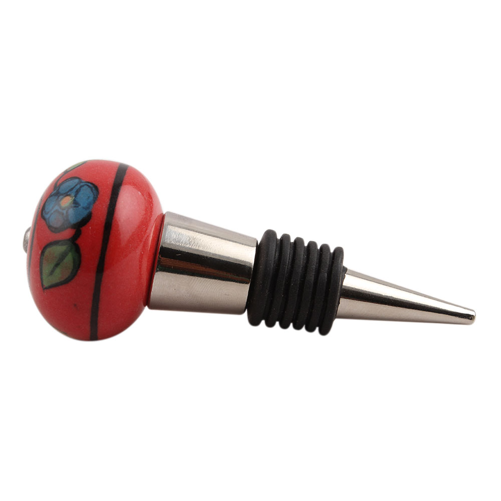 Blue Sunflower Ceramic Wine Stopper.zinc alloy wine bottle stopper.