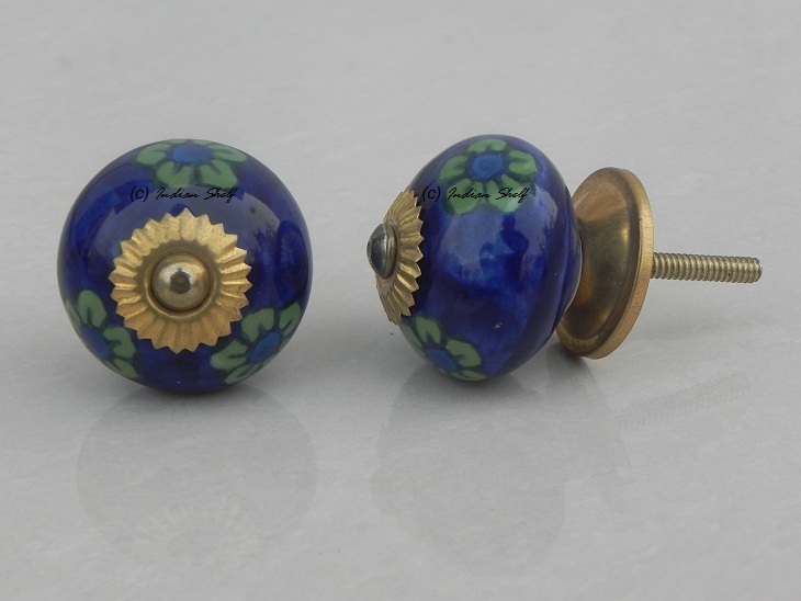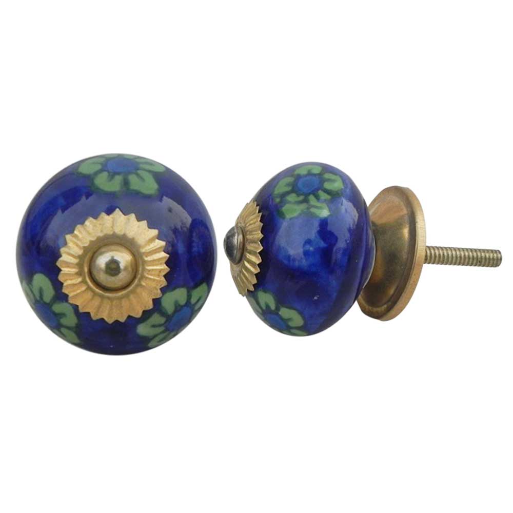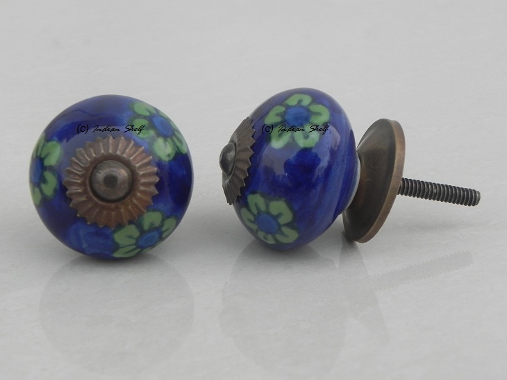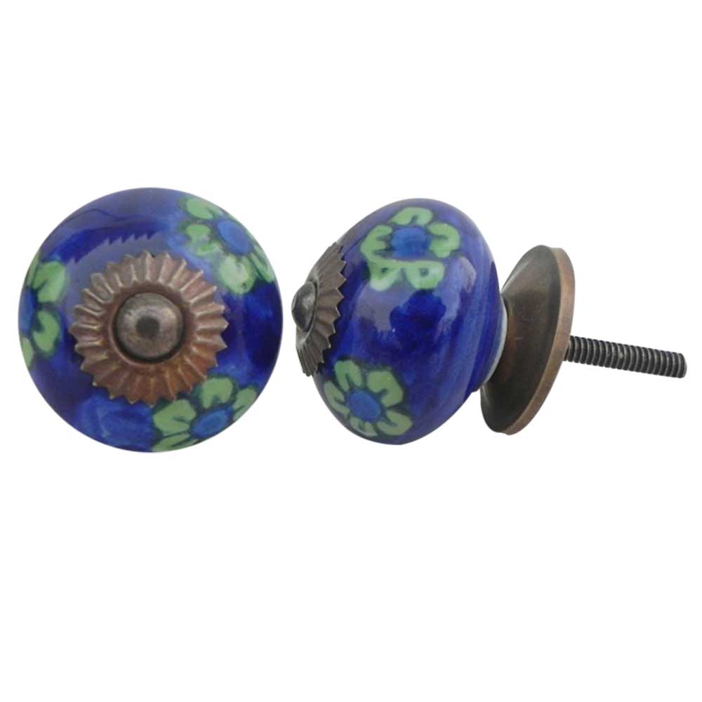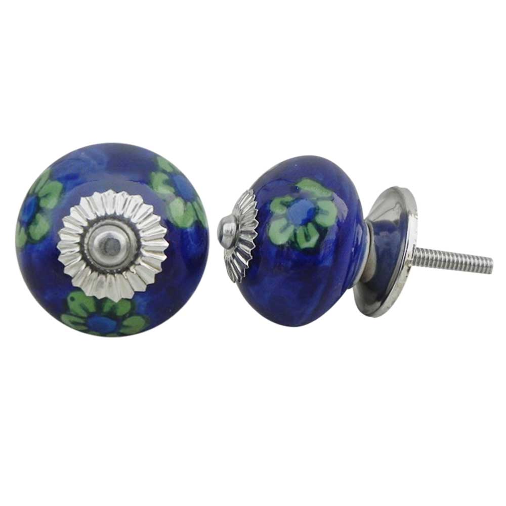 Blue Tiny Floral ceramic knob. Ideal for kitchen cabinets, kitchen drawers, dining room, bed room, chest drawers, dressing tables, almirah