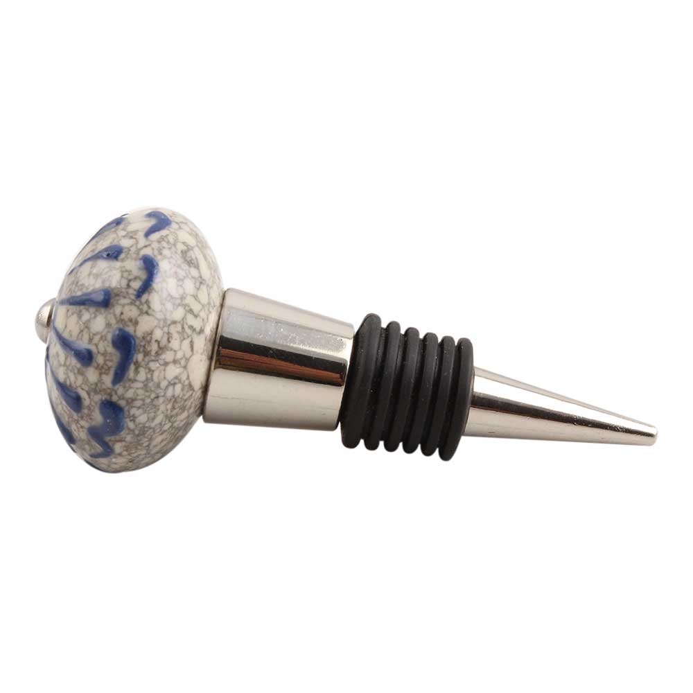 Blue Wheel Crackle Ceramic Wine Stopper.Zinc Alloy Wine Bottle Stopper with Attractive Jute Bag Packaging.