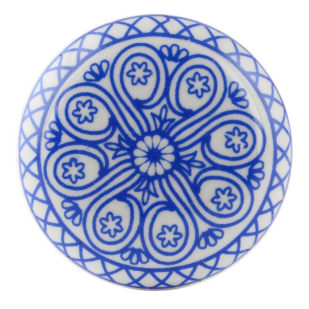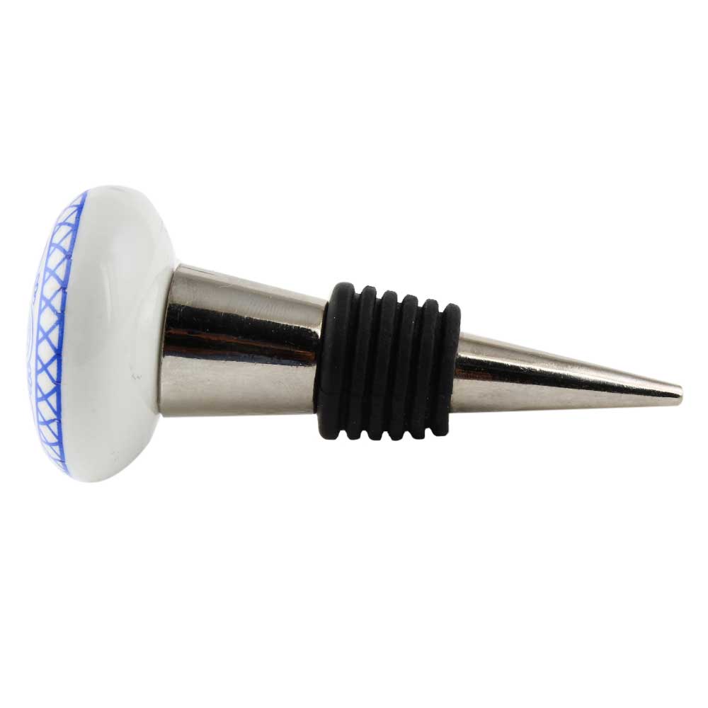 Blue Wheel Flat Ceramic Wine Bottle Stopper. Zinc Alloy Wine Bottle Stopper with Attractive Jute Bag Packaging.