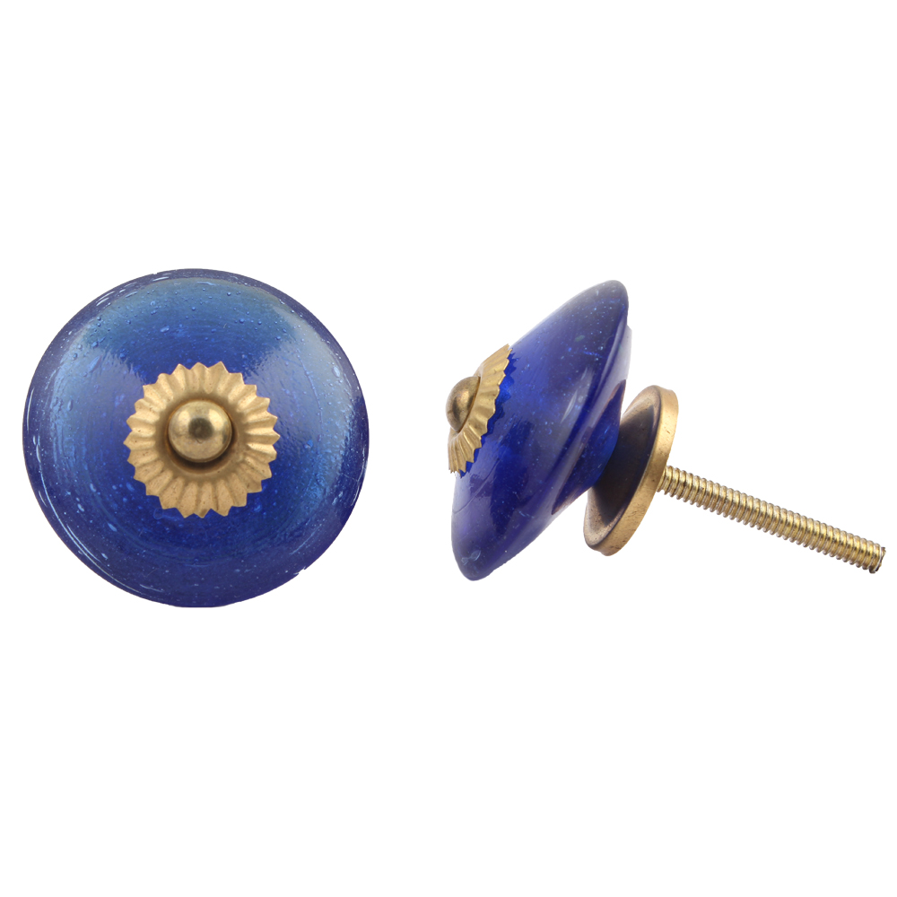Blue Wheel Glass Knobs. Ideal for Drawer, Dresser, Cabinet, Wardrobe, Cupboard and Almirah.