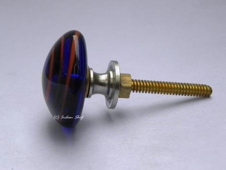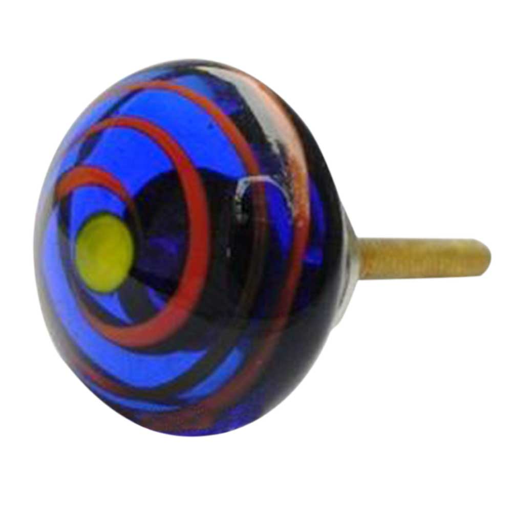 Blue with Red Striped Glass Knobs. Ideal for Drawer, Dresser, Cabinet, Wardrobe, Cupboard and Almirah.