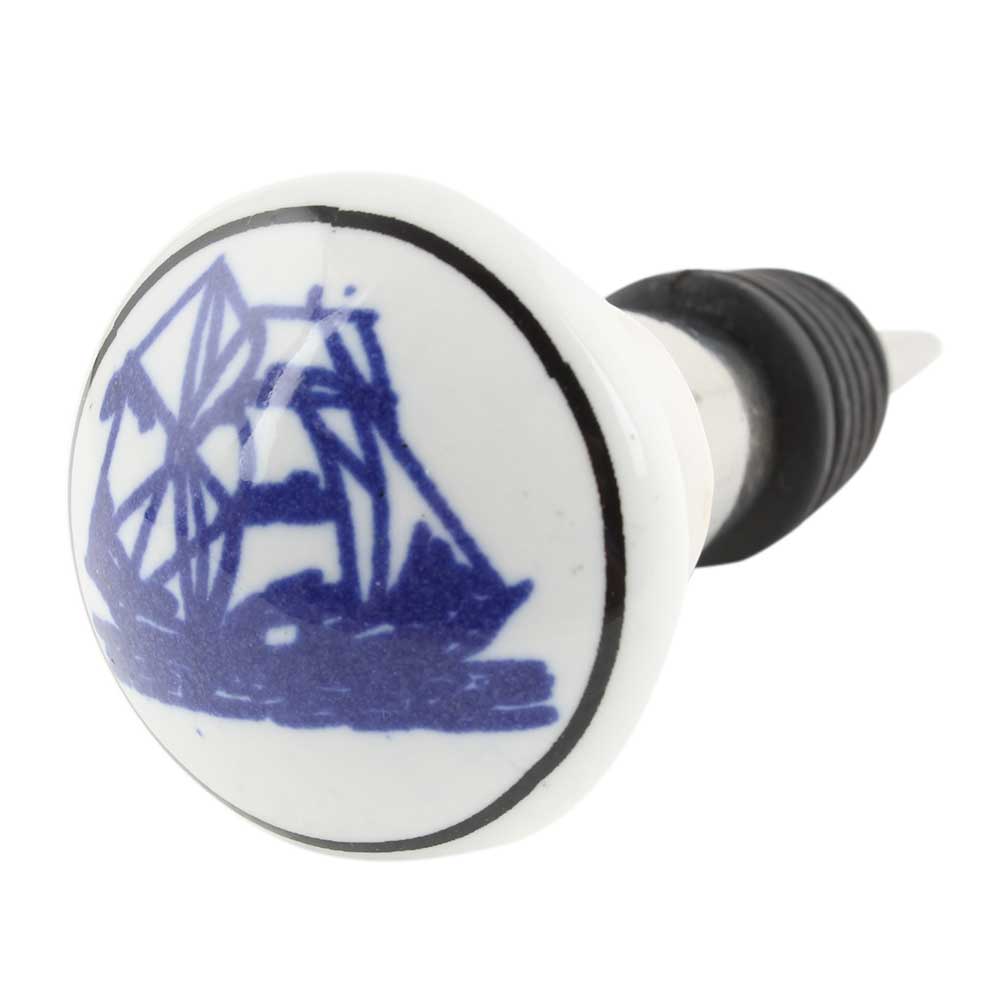 Blue Yatch Ceramic Floral Wine Bottle Stopper. Zinc Alloy Wine Bottle Stopper with Attractive Jute Bag Packaging.