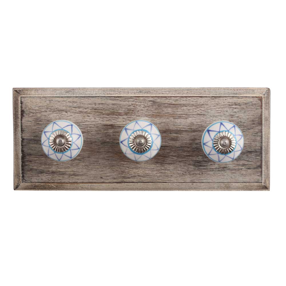Border Ceramic Wooden Hook. A Perfect Complement to the Soft Tone of the Wood are these White Traditional Hat & Coat Hook Made of Genuine Porcelain and Brass. It can be use to Hang Jewellery, Leashes, Towels, Scarves, Light Weight Sweaters, Caps Etc.