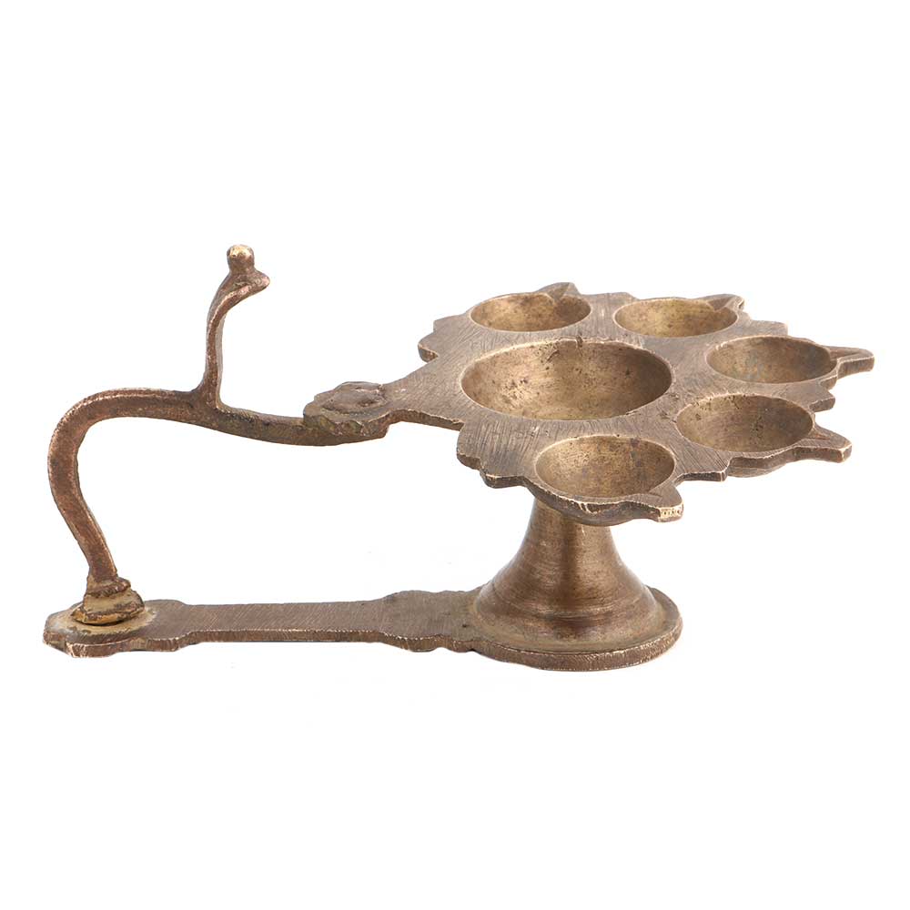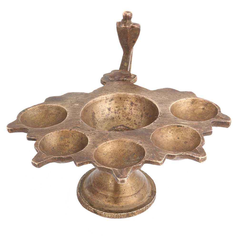 Brass 6 Wick Or Cavity With Cobra Head And Long Handle .Diwali gift, new year gift, stage decoration, worship lamp for temples and other places of worship Diwali, New Year ,weddings , engagement or inauguration ceremonies.. Perfect gift for your near and dear ones.
