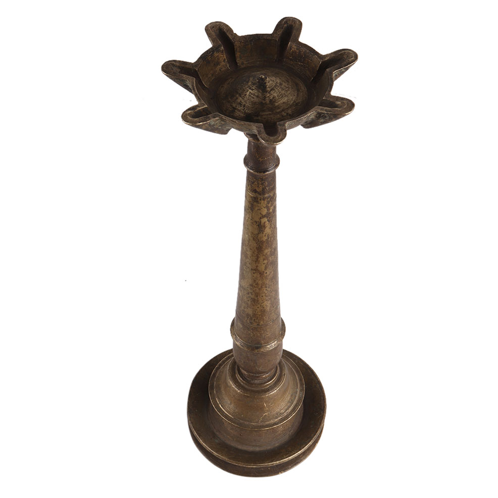 It is customary in India to light this handmade Kuthu Vilakku oil lampstand with 7 Jyoti during any important function or occasion. Fill the bowl with sesame or coconut oil or any other oil of your choice. Lighting such lamps is thought to be an auspicious sign. Fill the vintage oil lampstand with cotton buds and oil of your choice to bring positivity and happiness into your home. It is also known to clear the mind and induce relaxation.