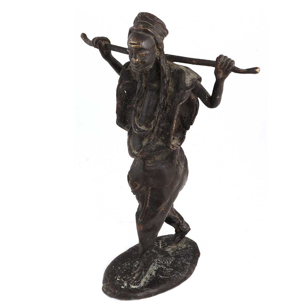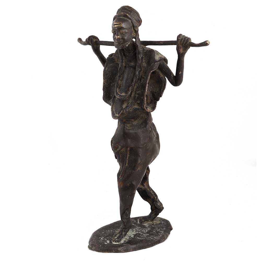 • Brass African Farmer Statue standing with stick