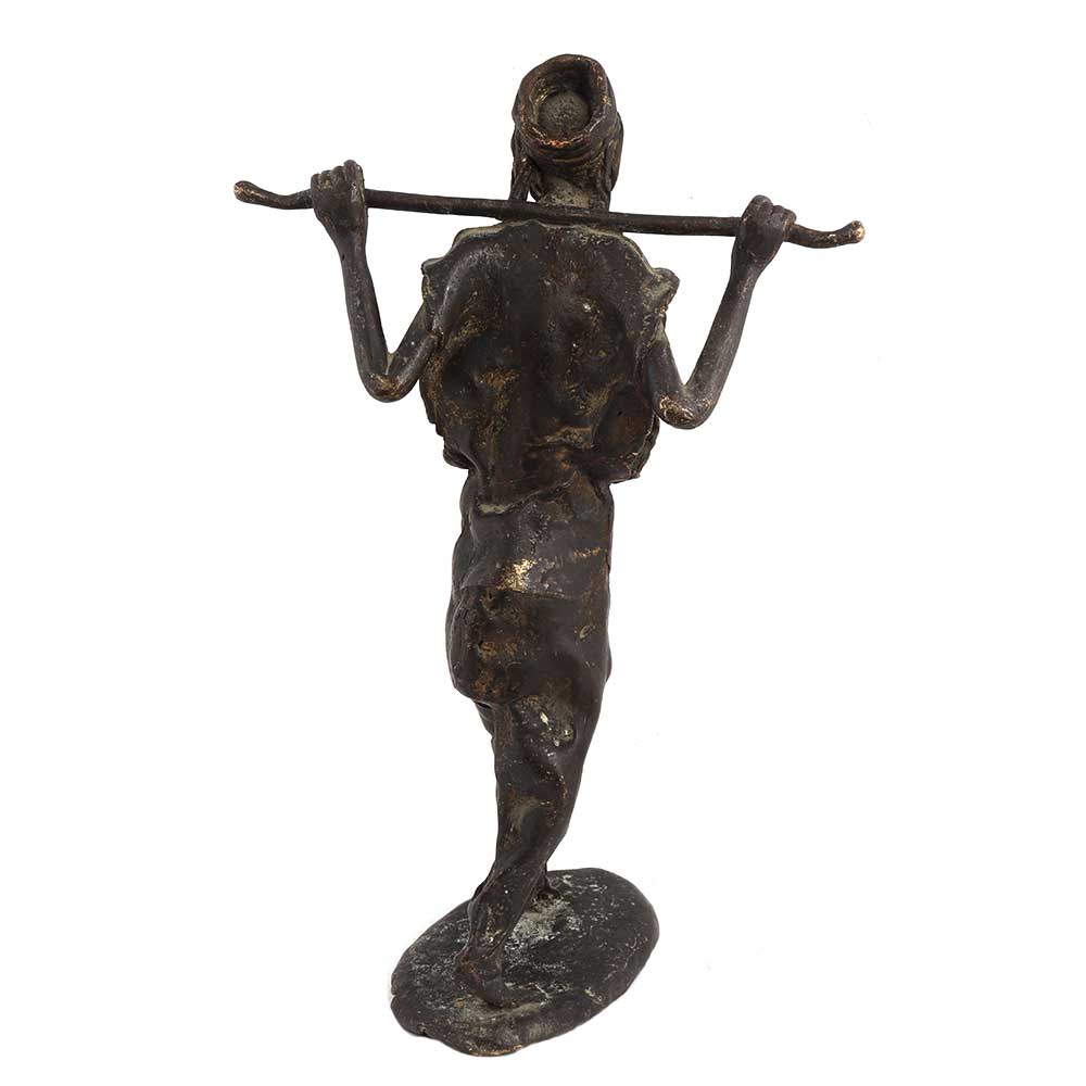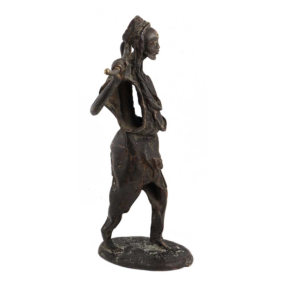 Brass African Farmer Statue standing with stick
