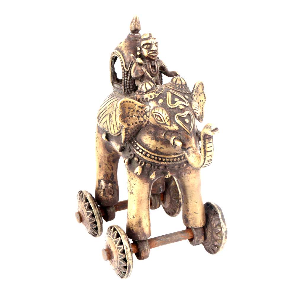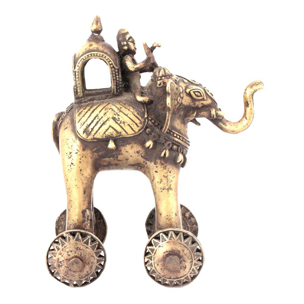 Brass Elephant with Carriage on the Back has Ornate Carvings and Was Used as a Temple Toy Now Used as a Decorative Product on the Display Unit.
