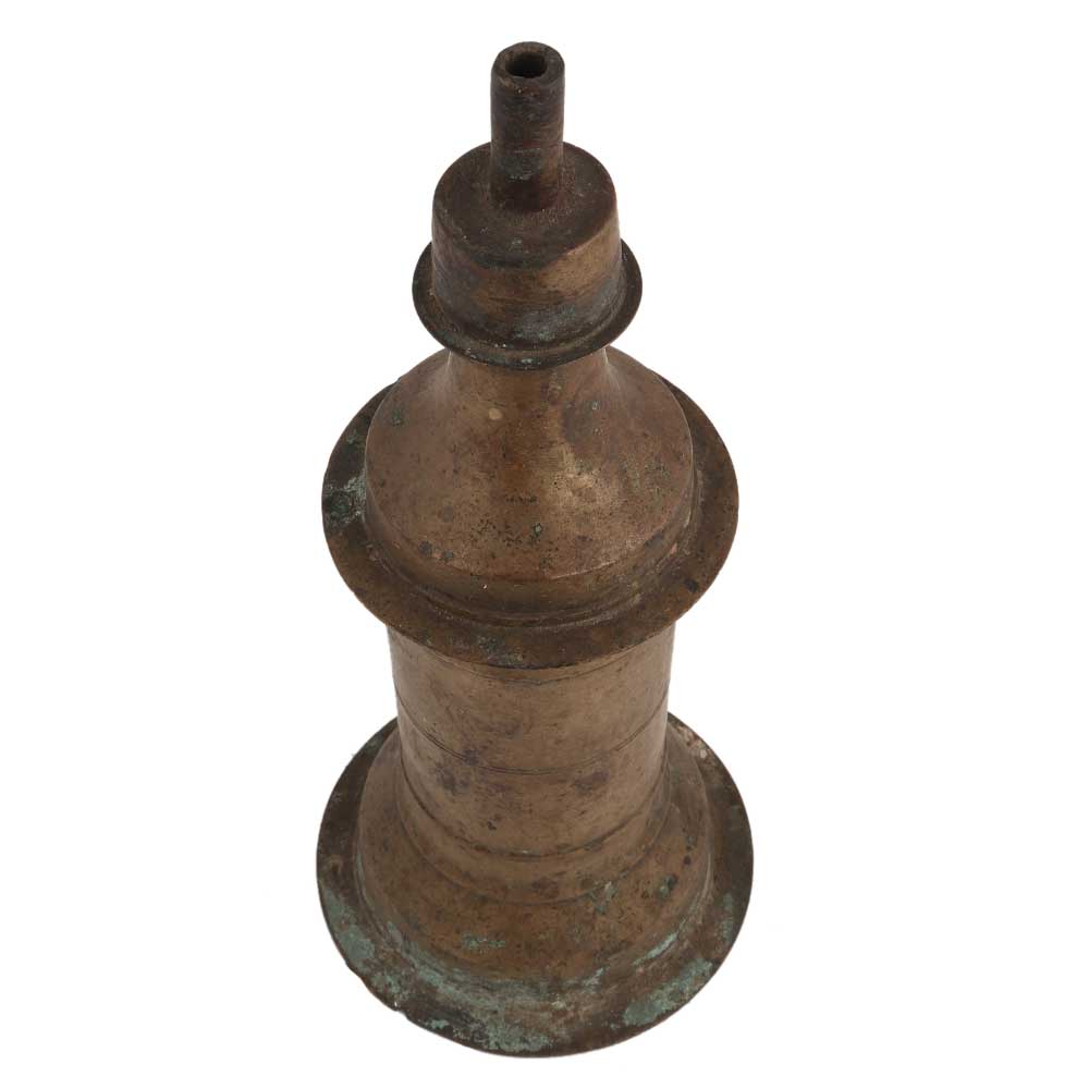 Long Antique style brass oil lamp made by the local craftsmen of India. Oil was filled in the cylindrical shape container with a single wick opening on top .. Decorative, Artifact Showpiece, Table display, wedding gift, Stage decoration, Home Décor, Office Desk And Gifting. Gift for near and dear ones.