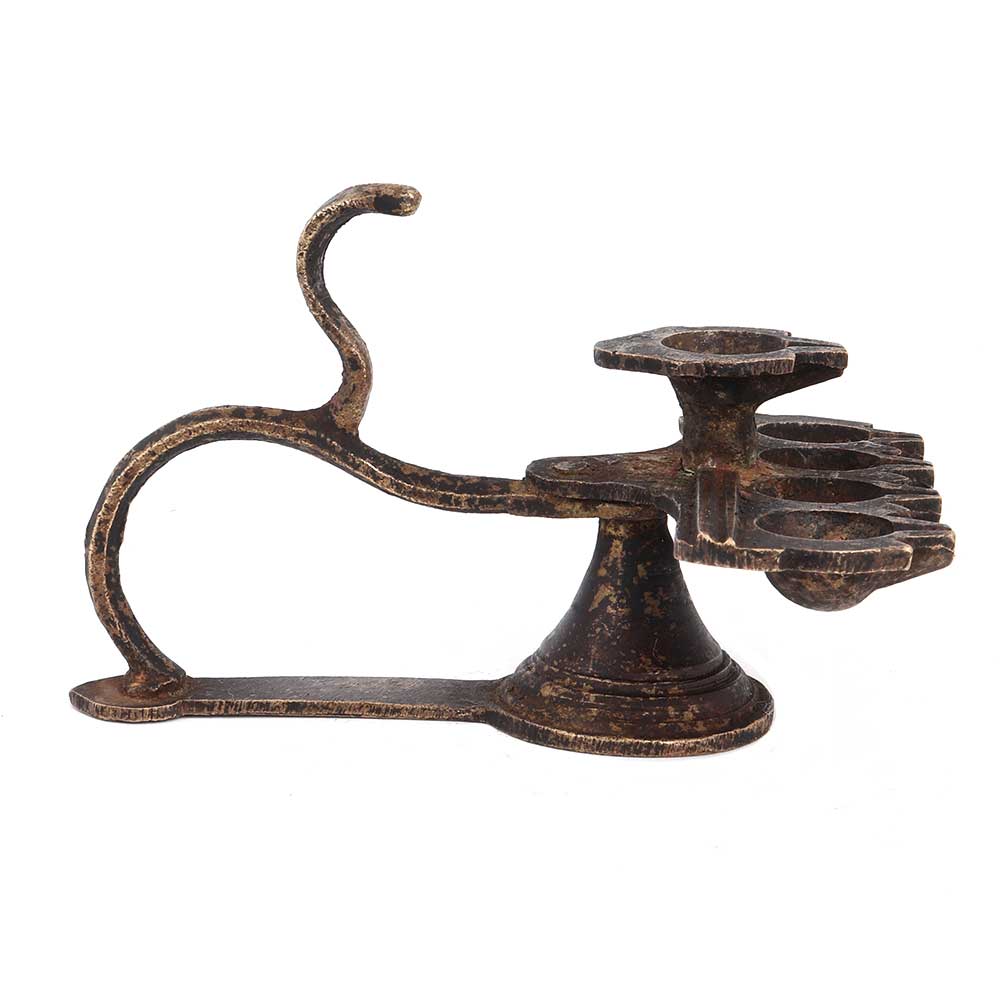 Brass Arti Worship Diya With Cobra Snake handle .Diwali gift, new year gift, stage decoration, worship lamp for temples and other places of worship . Perfect gift for your near and dear ones.