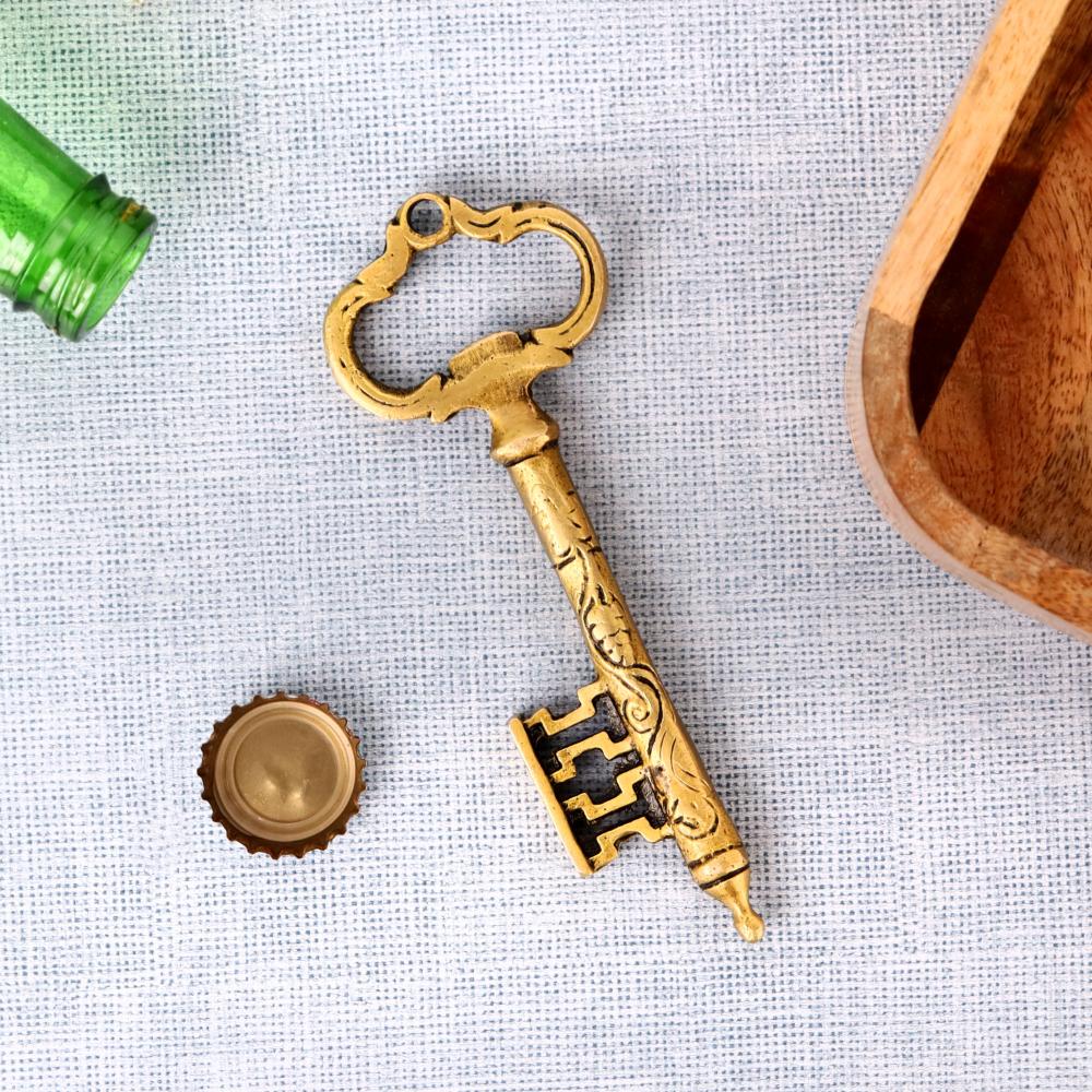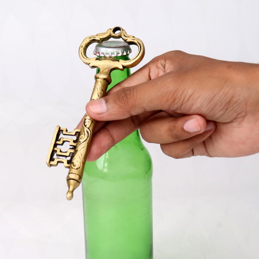 Not only is this bottle opener a practical tool, but it’s also a stylish piece that can be displayed on your bar counter, kitchen wall, or even as a decorative accent in your living room. The polished brass finish gleams in the light, and the oversized key shape gives it an antique look that’s both elegant and charming.