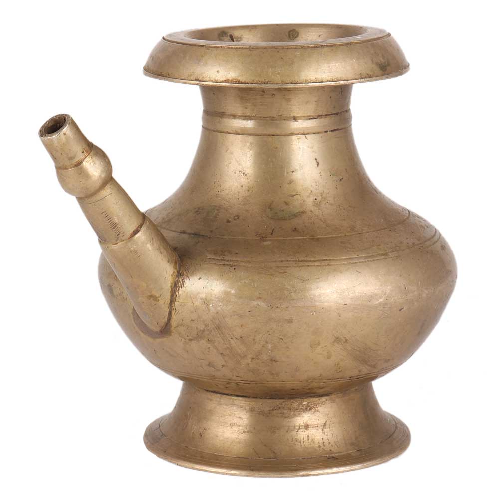 This ancient brass pot with a spout was originally used for serving and drinking water. It can be use for wedding decoration, as a business gift during diwali, new year and christmas. You may also use it as a flower container or planter.