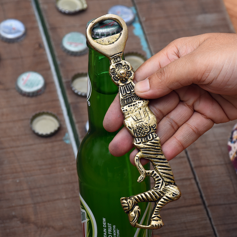 A Real Masterpiece the Artist has Combined Animal Figurine of tiger with Flower Motifs and Geometrical Pattern to Complete the Design. The Entire Design Rests on a Bottle Opener is Decorative and Functional At the Same Time.Â