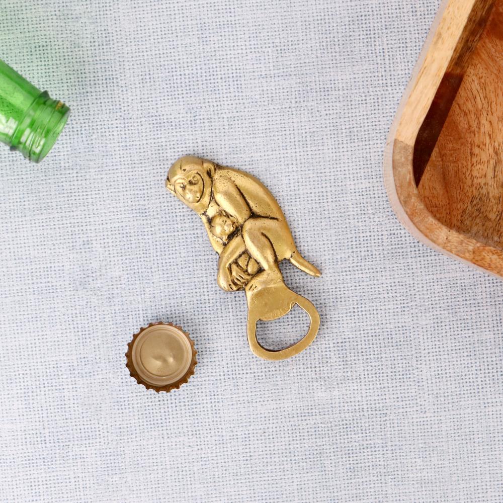 Brass Bottle Opener With Monkey And Child Statue