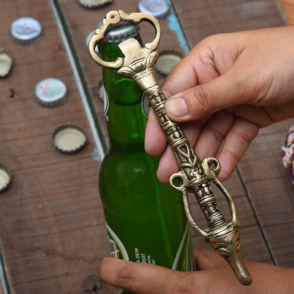 A unique tribal Style brass bottle opener has a unique shape and design . The design is a solid brass mayman bull face and is the perfect addition to a rustic or nautical theme kitchen or bar area .Convenient to carry while travelling and ideal gift for your friends and family.
