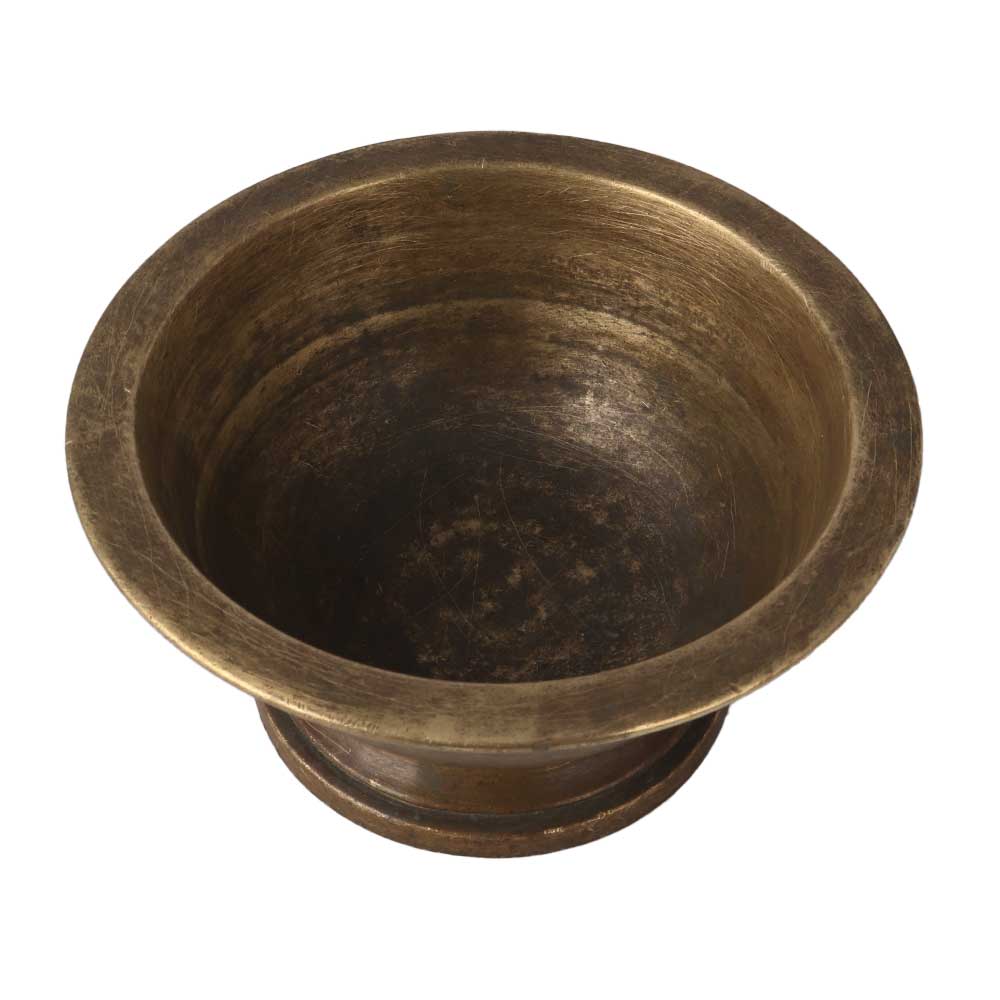 A Brass serving Pedestal cup is a decorative and functional piece of tableware commonly used for serving beverages, such as tea or coffee. The brass bowl is typically made of brass, a durable and malleable alloy of copper and zinc. The serving pedestal gives the cup a raised base, adding elegance and grandeur to the piece. The big bowl is often decorated with intricate patterns and designs, making it a perfect addition to any traditional or antique-inspired interior decor. The brass material also adds to the traditional and antique look of the piece. Serving Pedestal cups are perfect for formal or traditional gatherings but are not to be used for both hot and cold drinks.
