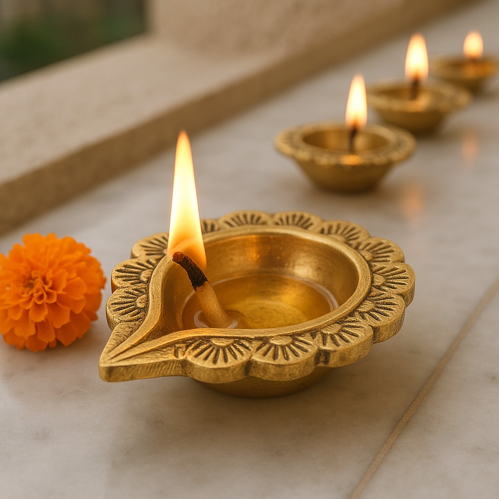 Add timeless beauty to your rituals with this Brass Bud Shaped Oil Lamp, delicately designed with a decorative border. Symbolizing purity, growth, and spiritual awakening, its floral-inspired bud shape makes it both sacred and artistic. Crafted in radiant golden brass, this diya is the perfect blend of traditional devotion and ornamental charm—ideal for mandirs, festivals, or as a heartfelt gift.