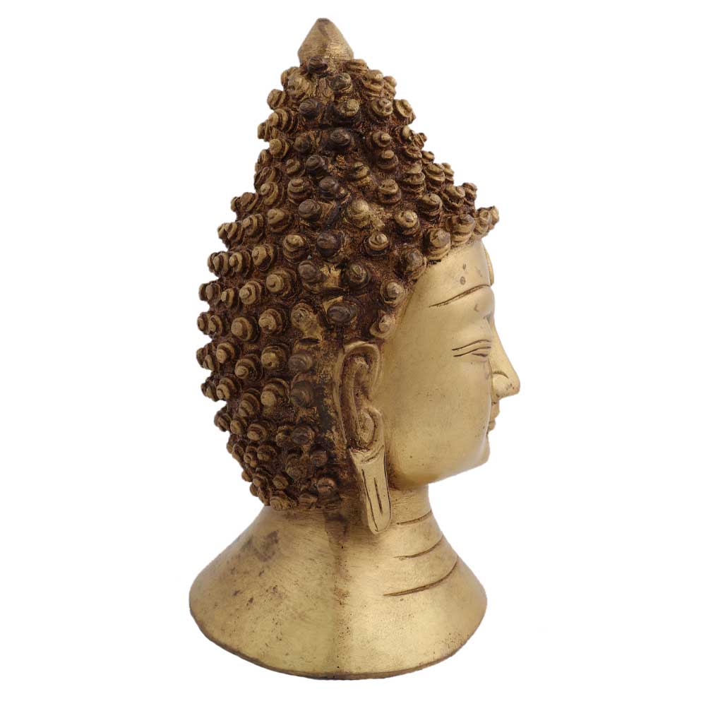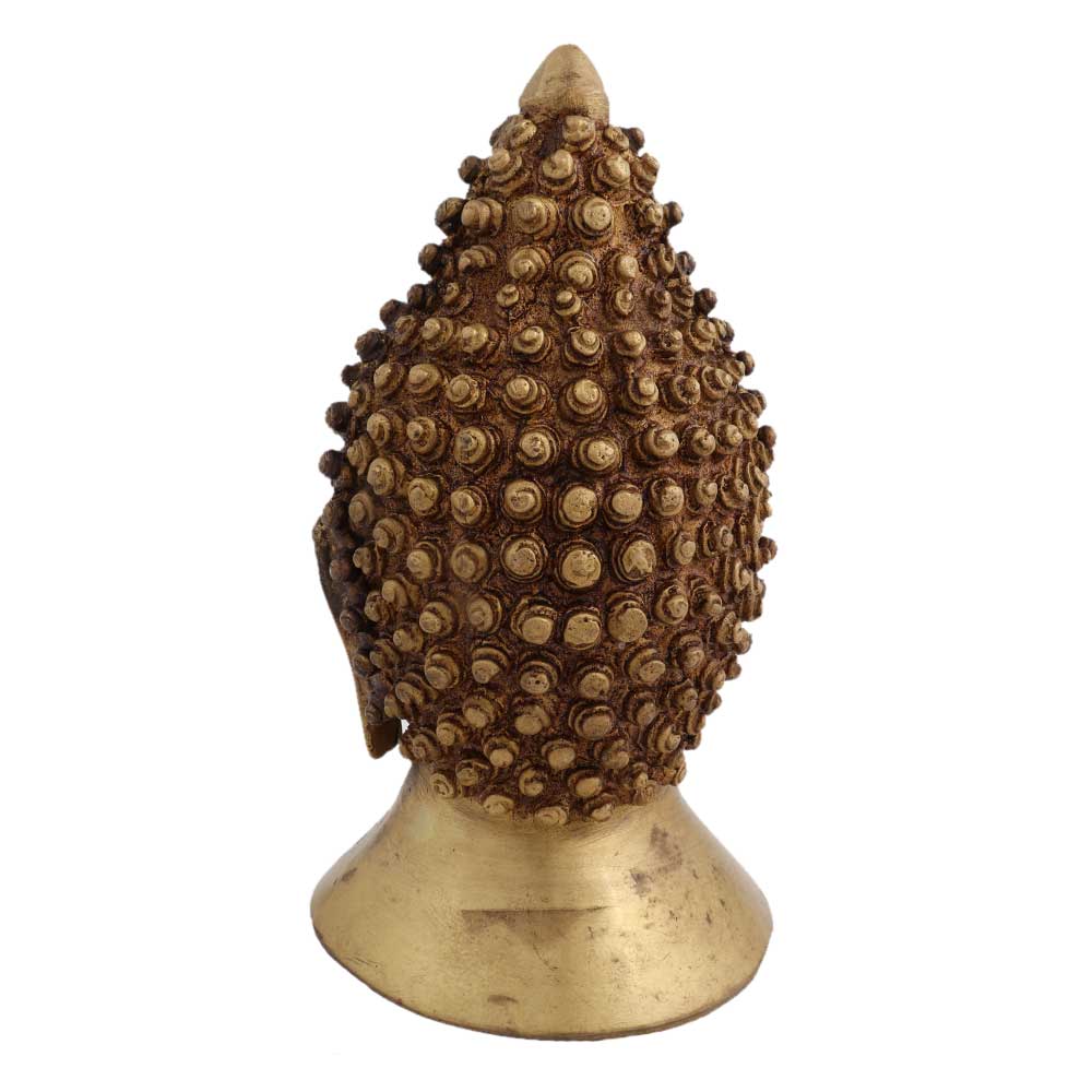 Handmade brass Buddha face head statue with curly hair tied in a bun and eyes closed in meditation with long hanging earlobes. Gift it to your near and dear ones on diwali, new year , Christmas, new year, wedding gift, birthday gift or house warming gift.