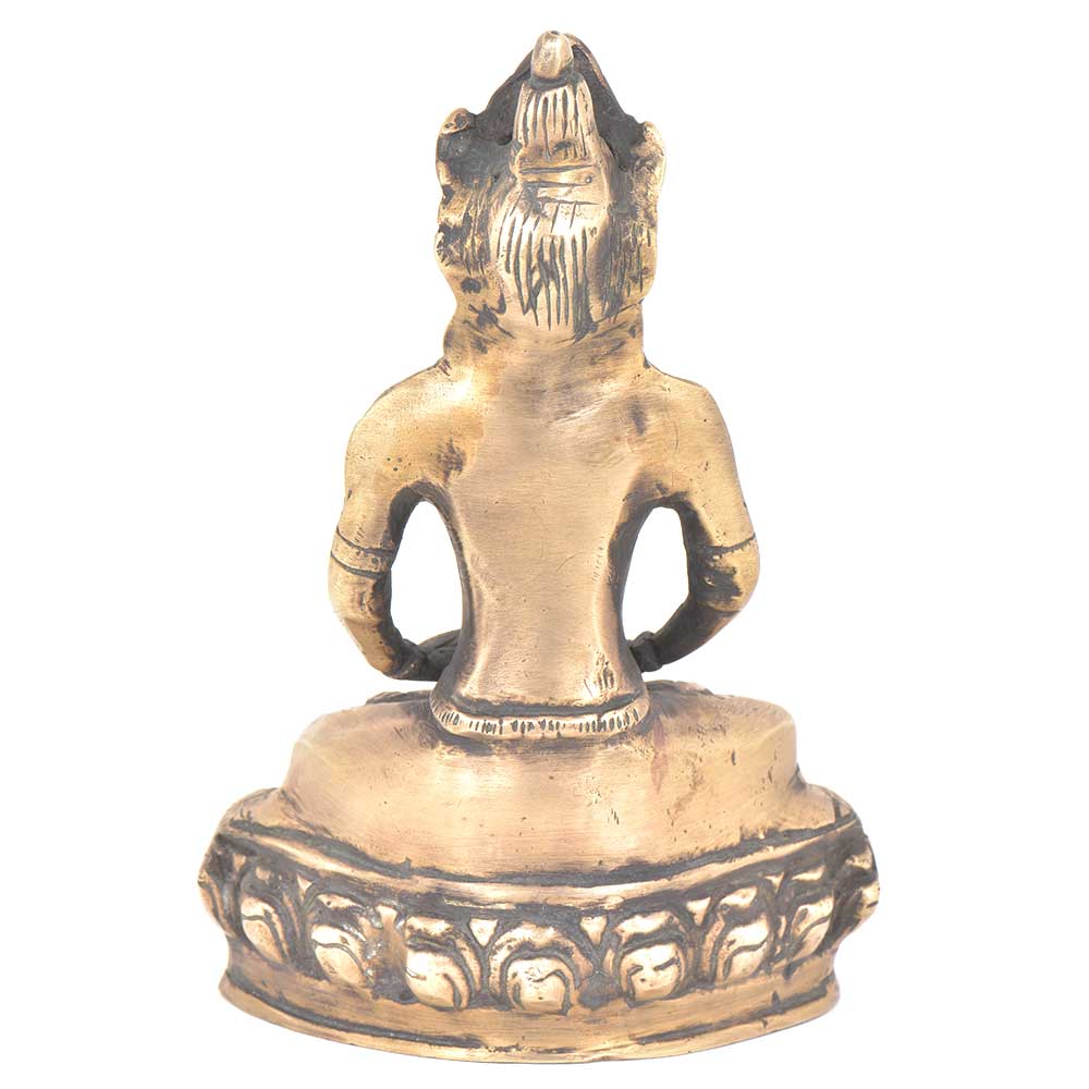 Handmade Seated Buddha is made in very fine quality brass with emphasis on facial expression on the face of Buddha. Brass Buddha seated on a lotus platform is a perfect portable altar to place anywhere. This statue is a peaceful energy reminder for home or office.