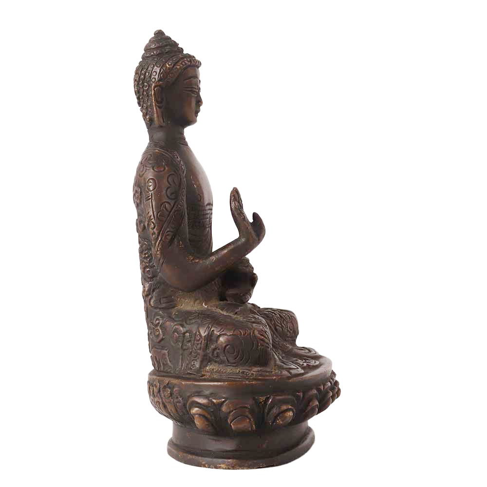 This statue depicts the idol of the Buddha in meditation position. A brass statue of Lord Buddha handcrafted from high quality brass by skilled workers in Nepalese art. An auspicious brass statue to keep at home, office, hotel, store, restaurant, gym or spa to spread positive energy. Lord Buddha statue should always face east for its benefits. According to Fen shui and vastu shashtra, Buddha statue are auspicious and brings good luck. Display this incredibly crafted statue on study table, reception or shelf. An auspicious gift for any special and festive occasion to your near and dear.