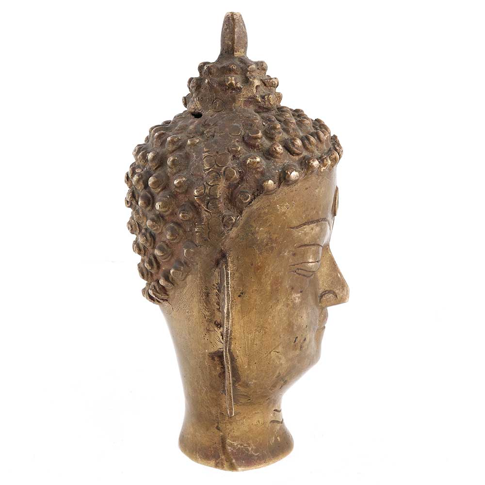 The Brass Budha head from Bihar represents the peaceful face of the founder of Buddhism. Using Brass Budha's head from Bihar helps bring peace, ambiance, and harmony to the house. It can also be used to offer a positive vibe when used in office and business decor. The brass craft and attention to detail act as a timeless and magnificent decorative element and collectible.
