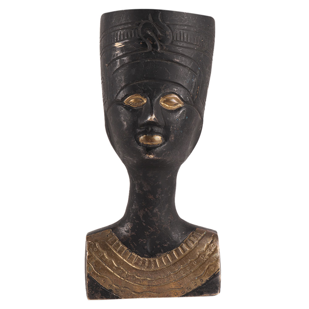 This artistic handmade brass bust of Neferneferuaten Nefertiti an Egyptian queen and the great aristocratic wife (chief consort) of Pharaoh Akhenaten. Nefertiti and her husband were famous for starting a religious rebellion by worshipping only one god, Aten, or the sun disc. She reigned with her husband during what was undoubtedly the richest period in Ancient Egyptian history.