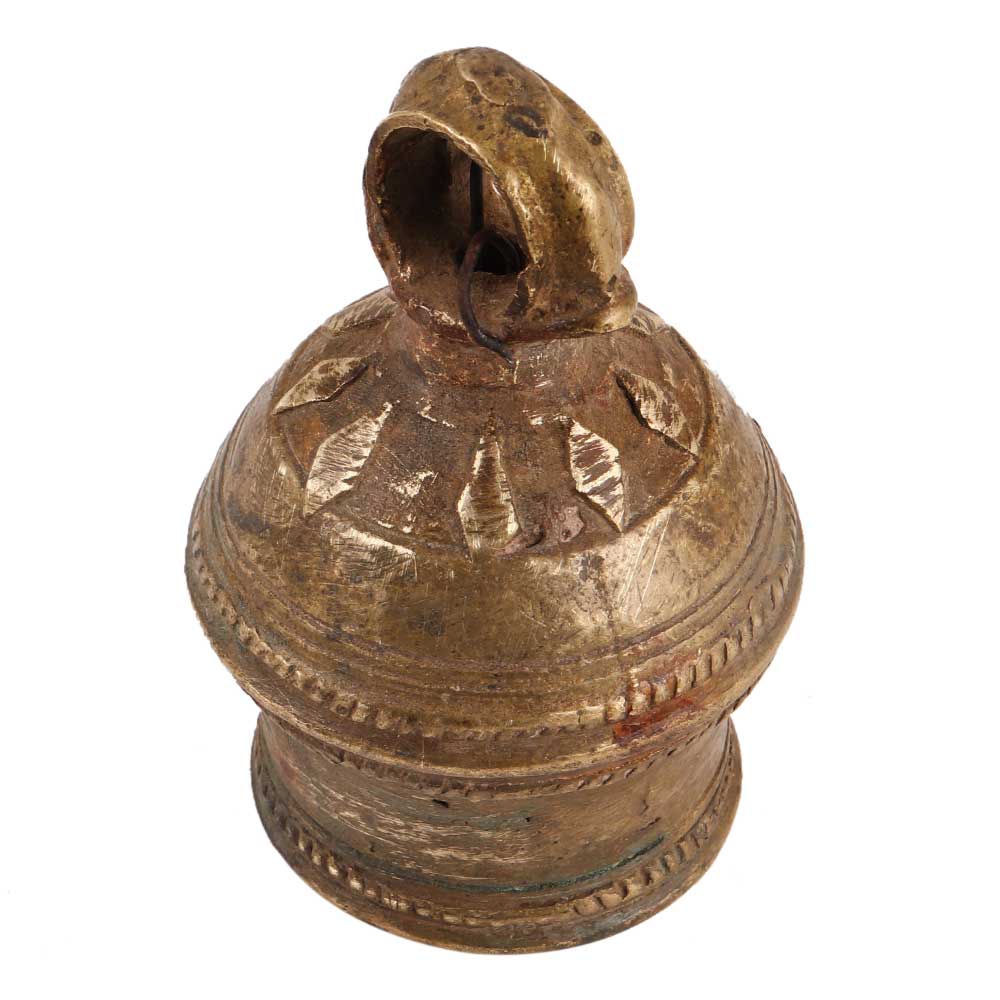 Complete your home's decor with this brass carved round shape Cow Bell, and add Indian flair to any room decor. This embossed Brass bell adds to the decoration and gives the home a safe and silent vibe. Ideal for both home and office use. A significant personal and professional collection. This handcrafted bell is ideal for gifting to friends and family.