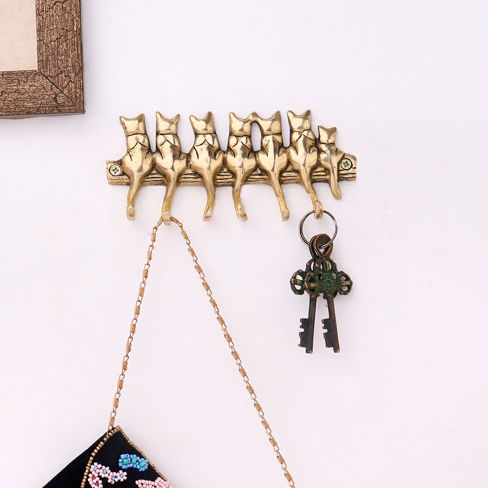 Q: How many hooks does the key holder have? Q: Can it support heavy key bunches or tools? Q: Is the cat design hand-carved? Q: Will it tarnish or lose its shine over time? Q: Is hardware included for installation?