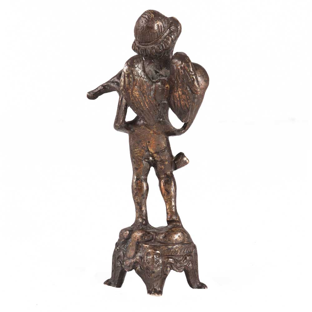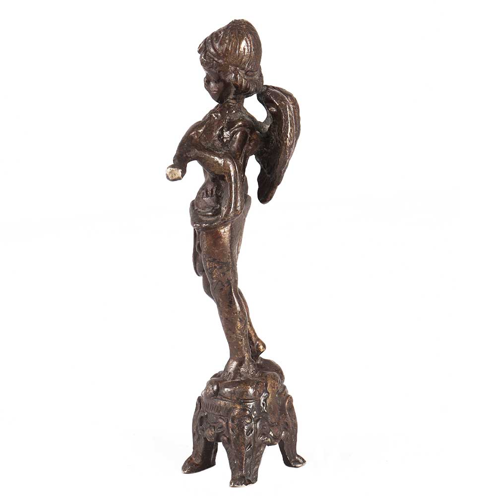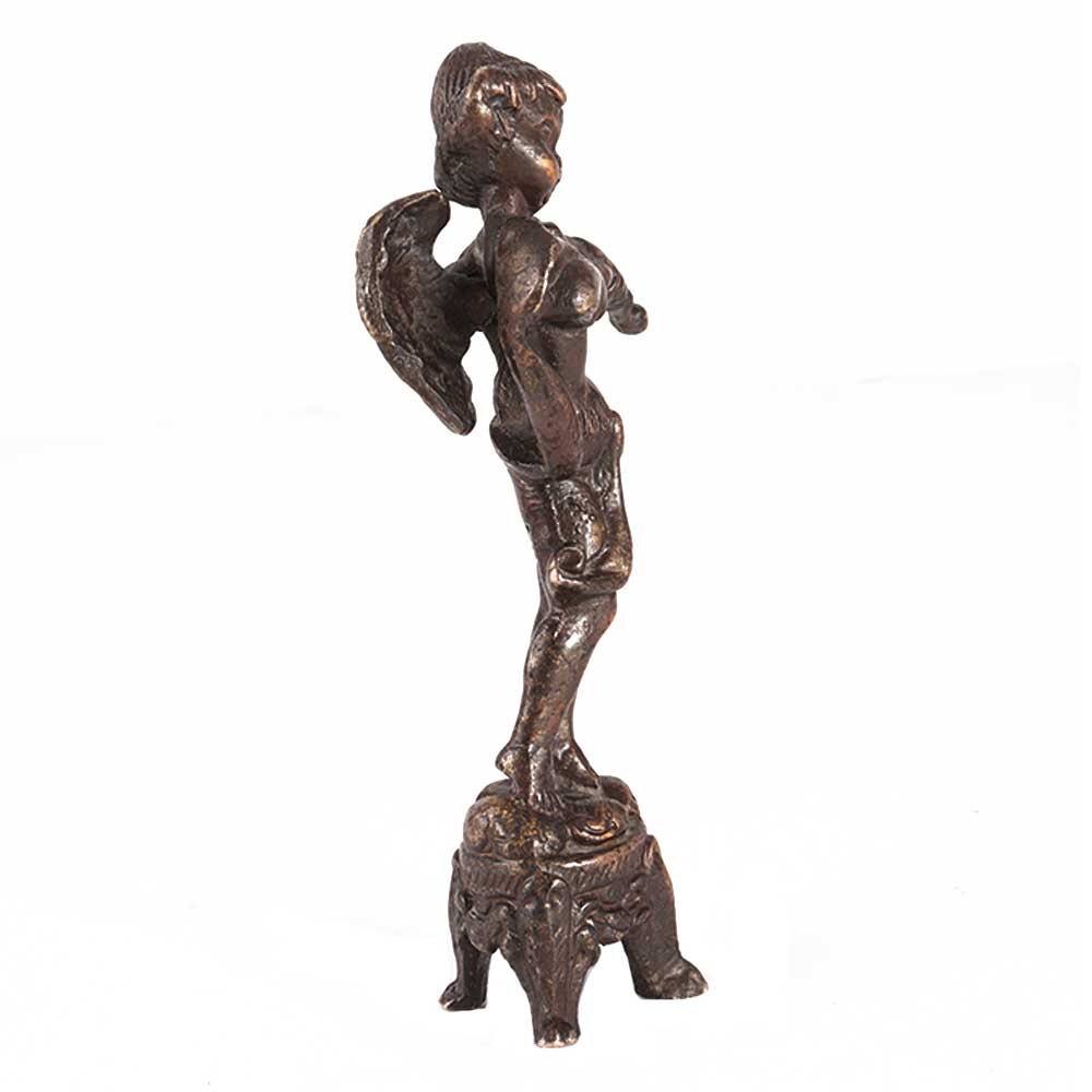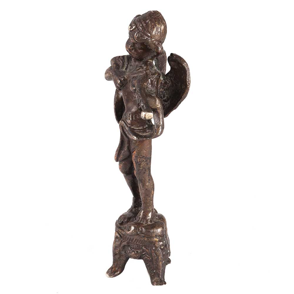 Brass cupid cherub trying to play violin would be a cute way to get attention to fro friends and family. The violin is being played by the cupid on the handle. This is a stunning piece that everyone should own. This statue is handcrafted in an ancient finish and created of solid brass. It can be displayed both inside and outside your apartment.