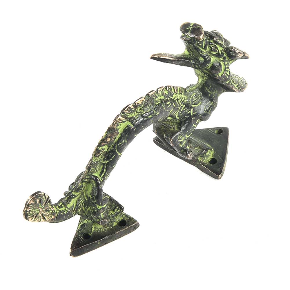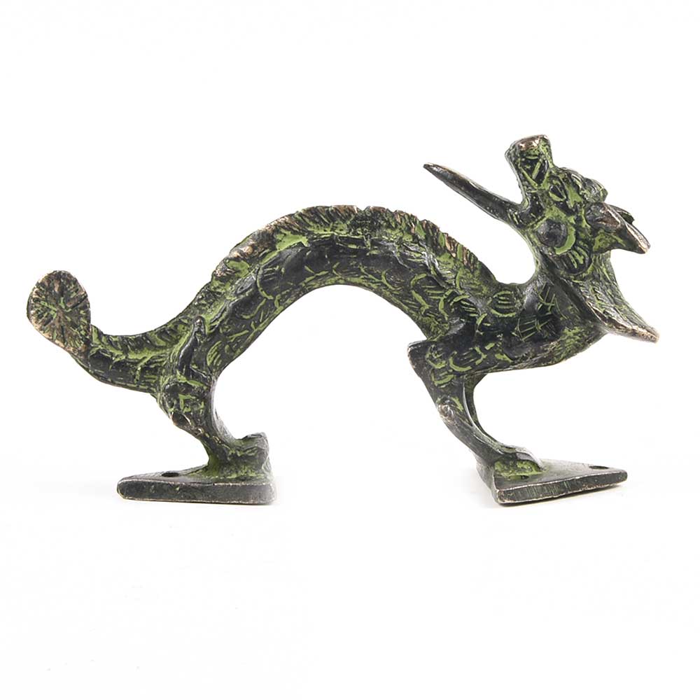 It has Lovely Brownish Color with Onset of Patina formation Dragon is Depicted on Its Four Legs with Turned Head and Protruding Tonqueand Raised Tail. Ideal for Drawer, Dresser, Cabinet, Wardrobe, Cupboard and Almirah.