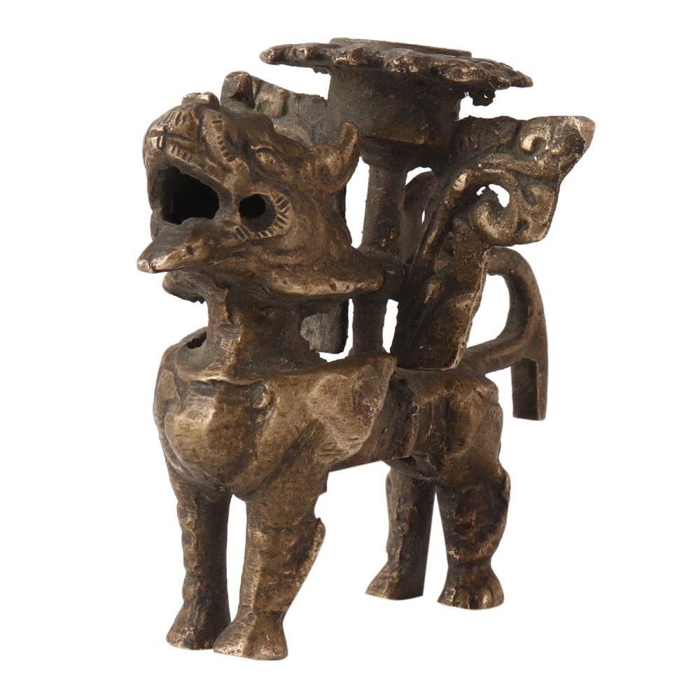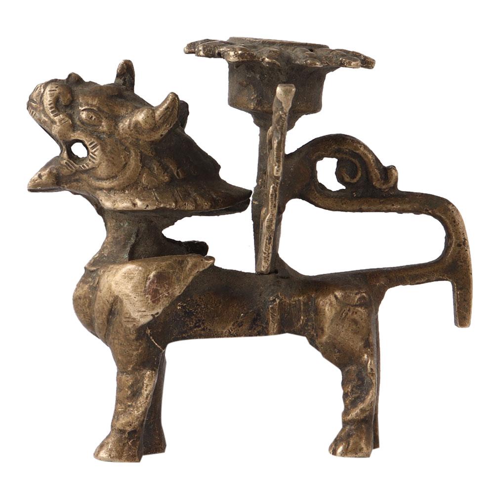This Brass Chinese Foo Dog Candle Holder is perfect if you're looking for a statement piece or pieces. They certainly catch the eye. As if it were the flag of its nation, it stands tall and proudly displaying its armor and holding the candle for all to see. This would make an excellent present for the family collector or a distinctive addition to your own home decor.