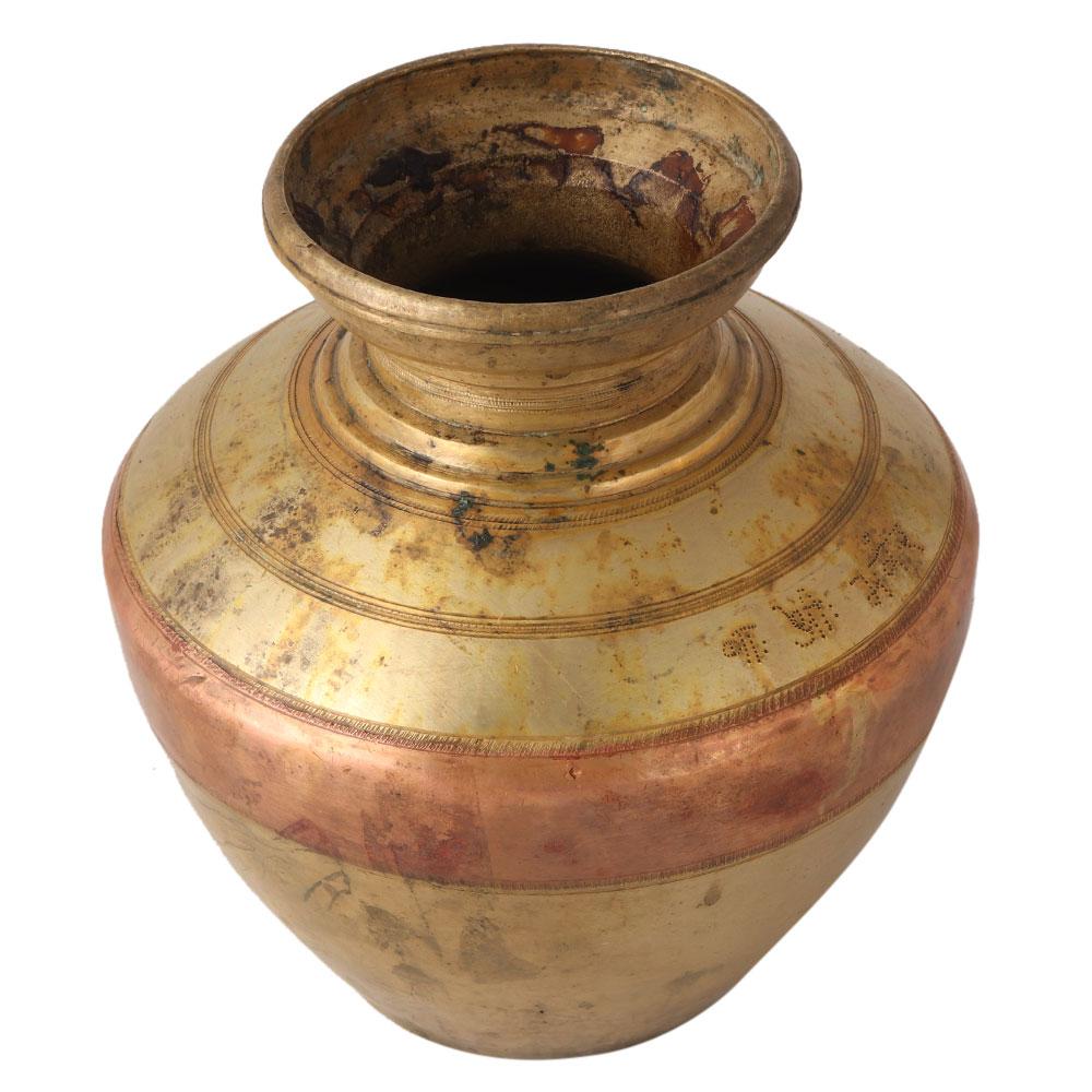 Brass-Copper Used Water Pot is bronze in colour. It can be used as a wedding gift for your loved ones. It has a line pattern on the sides.
