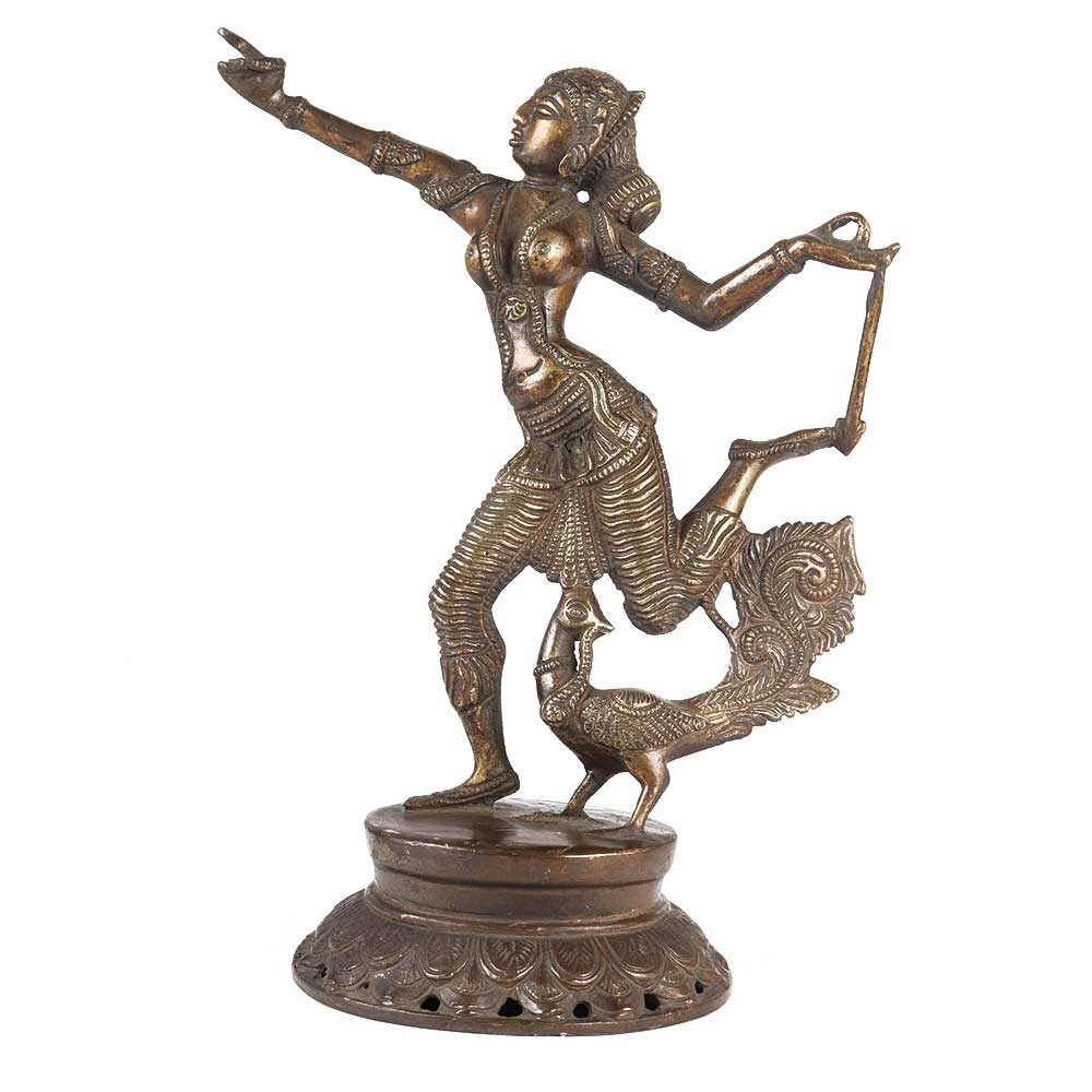 Brass Indian Dancing Lady statue with peacock figurine is perfect for decorating a workplace, office desk or home.  It could be viewed as a gift for your loved ones.
