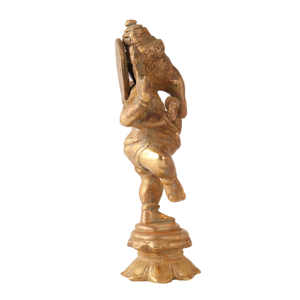 The Brass Dancing Lord Ganesha is a popular decorative item in Hindu culture. It is a handcrafted brass statue of Lord Ganesha, the elephant-headed world famous statueGod known as the remover of obstacles and the patron of arts and sciences. This statue depicts Lord Ganesha in a dancing posture, with one foot raised and his multiple arms in various positions. It is believed that this posture represents Lord Ganesha's joy and happiness in overcoming obstacles and achieving success. The brass Dancing Lord Ganesha statue deco is a symbol of good luck, prosperity, and happiness. It is often used as a decorative item in homes, offices, and temples, and is also a popular gift item during festivals and special occasions. It is believed to bring positive energy and blessings to the surroundings.