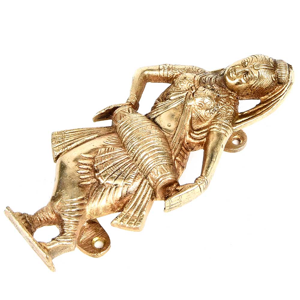 Hand Made brass dancing girl with dholak for pulling and closing the door Handle.