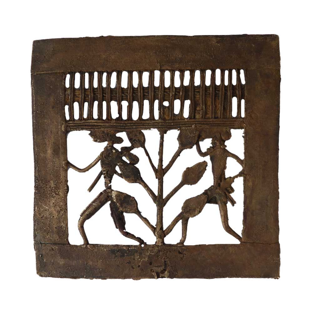 This wall decor frame is made of dhokra art made with dull brass by hand. Craftwork that is lovely and rustic and has a distinct ethnic appeal. The unique 13 stage process of Dhokra Bell metal making, which is entirely handcrafted, is the result of the original craft instinct passed down through the ages. Brass, nickel, and zinc are combined to create the Dhokra Bell metal alloy, which gives castings a vintage appearance. Excellent tool to use! Beautiful décor and unique gifts. A lovely work of art with a lovely decorative shape.