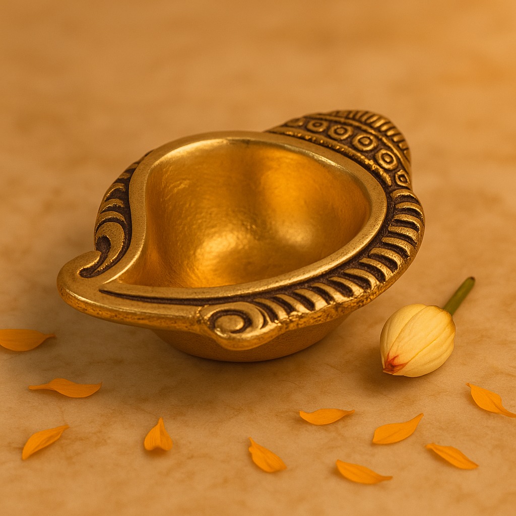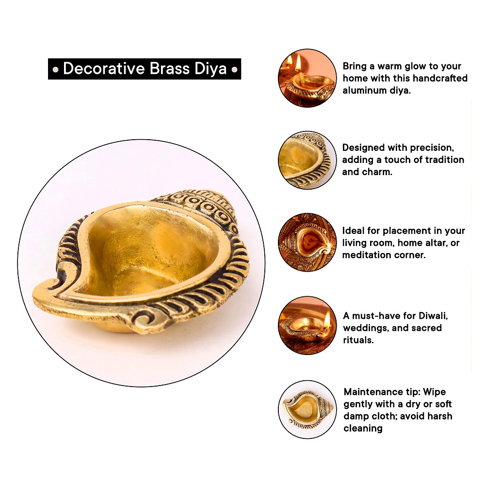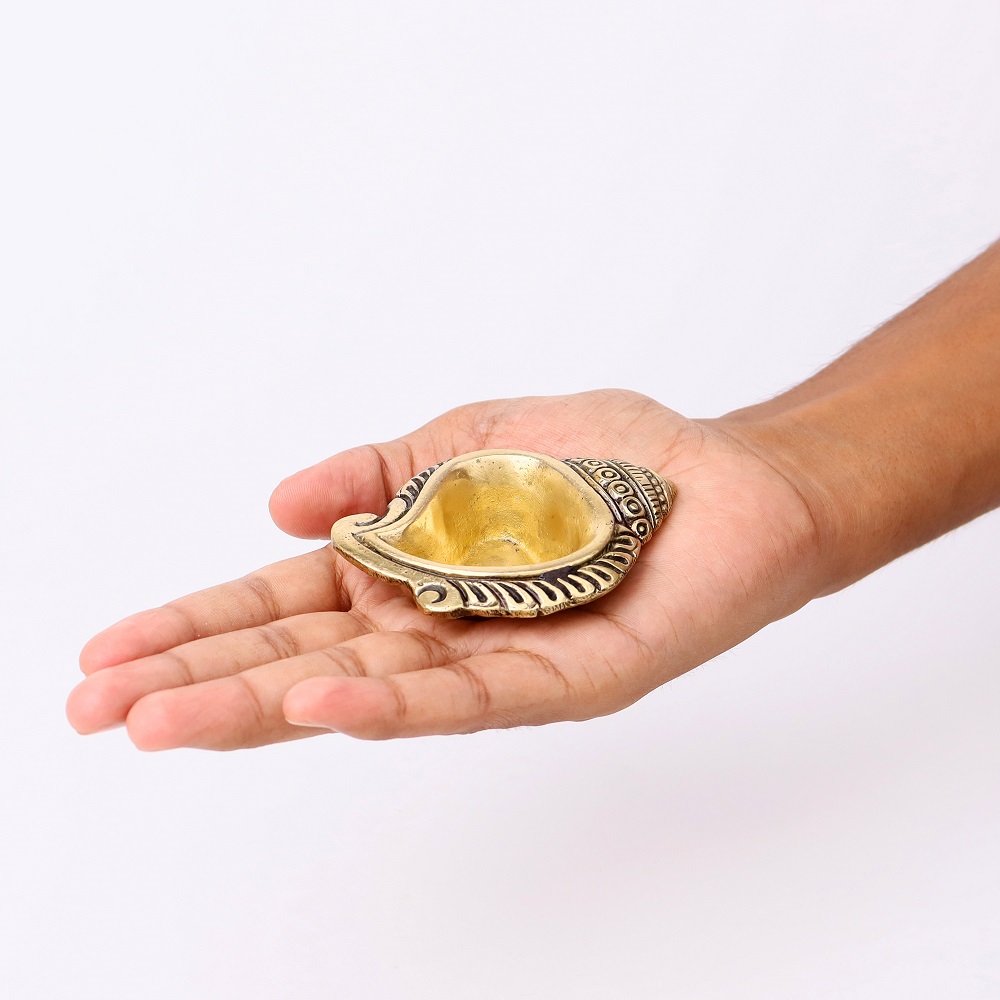 Bring divine energy into your home with the Brass Decorative Conch Shaped Oil Lamp. Designed in the sacred form of a conch (Shankh), this diya symbolizes purity, prosperity, and the eternal sound of Om, making it an auspicious choice for pooja rituals and festive décor.