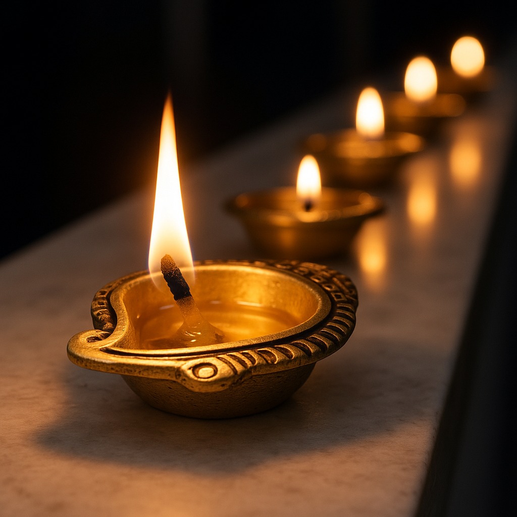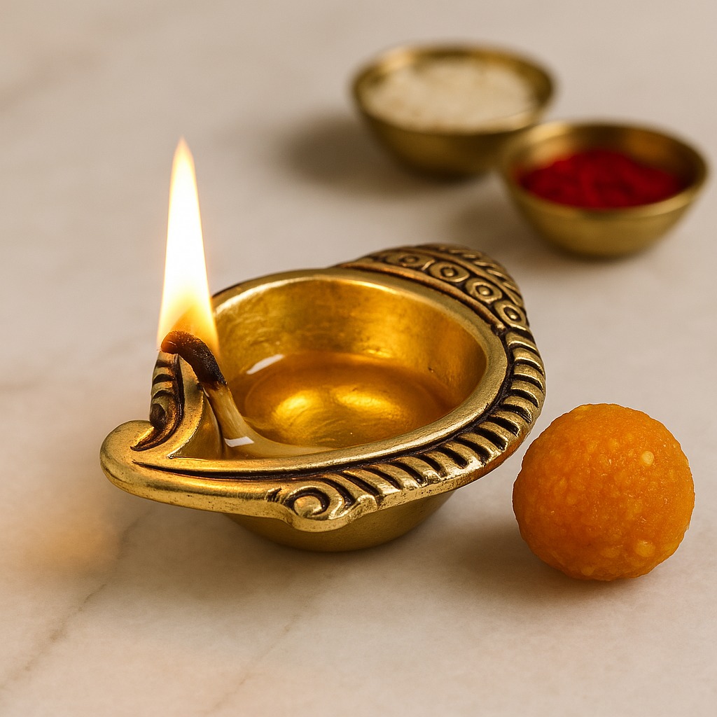 Ghee, sesame oil, or mustard oil work best for steady flames.