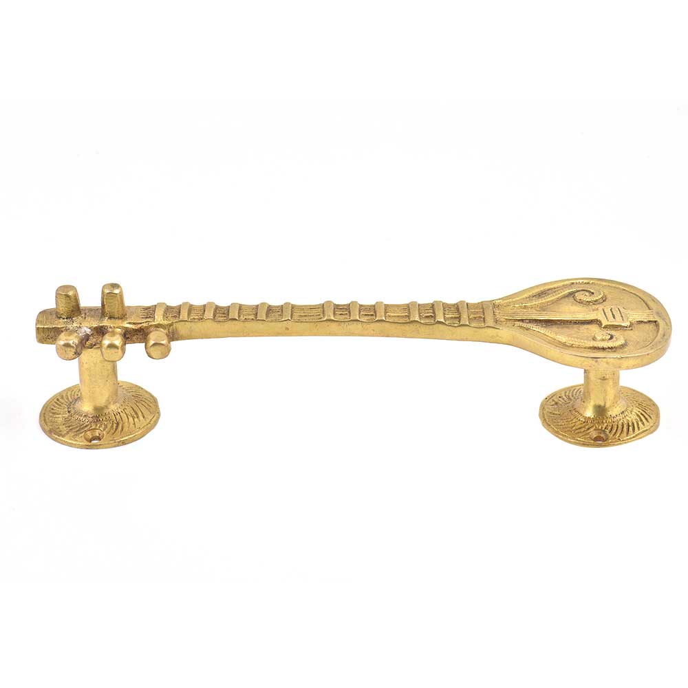 Ethnic Brass Decorative Sitar Cum Door Handle. Ideal for Drawer, Dresser, Cabinet, Wardrobe, Cupboard and Almirah.