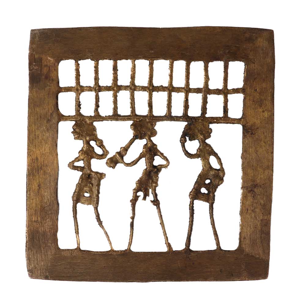 The dhokra artifact's unique design and ethnic appeal add to the ambiance. An image of an Indian tribal celebration is enclosed in this decorative brass wall hanging frame, and it will mesmerize you. The tribal metal art is handcrafted in Chhattisgarh using brass metal and traditional artistic techniques called Dhokra Art, also referred to as Bastar Art or Bell Metal Art. The vintage figurines display expert craftsmanship and are exquisitely decorated. This lovely piece of tribal art will be the ideal decoration for both your living and work spaces. Perfectly made, this will be a great choice for you. Â The Dhokra metal craft item makes a wonderful addition to any home or housewarming gift.
