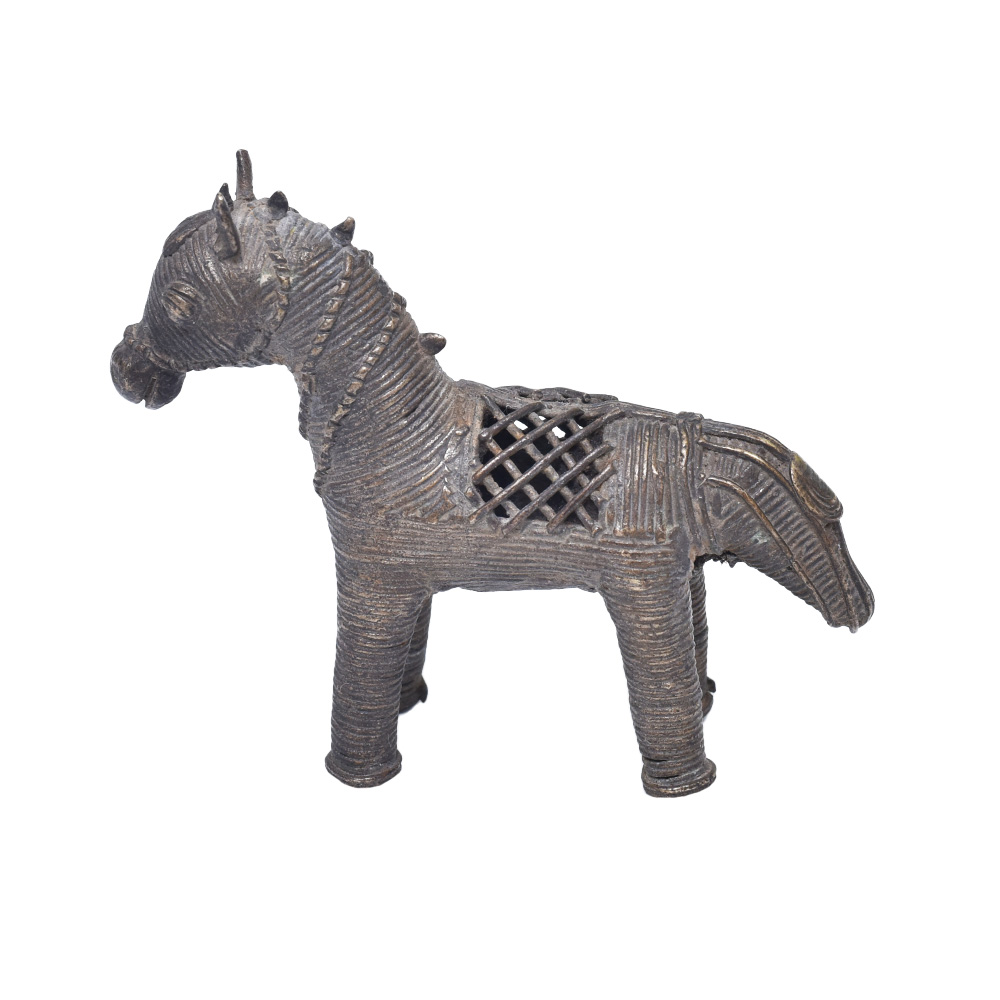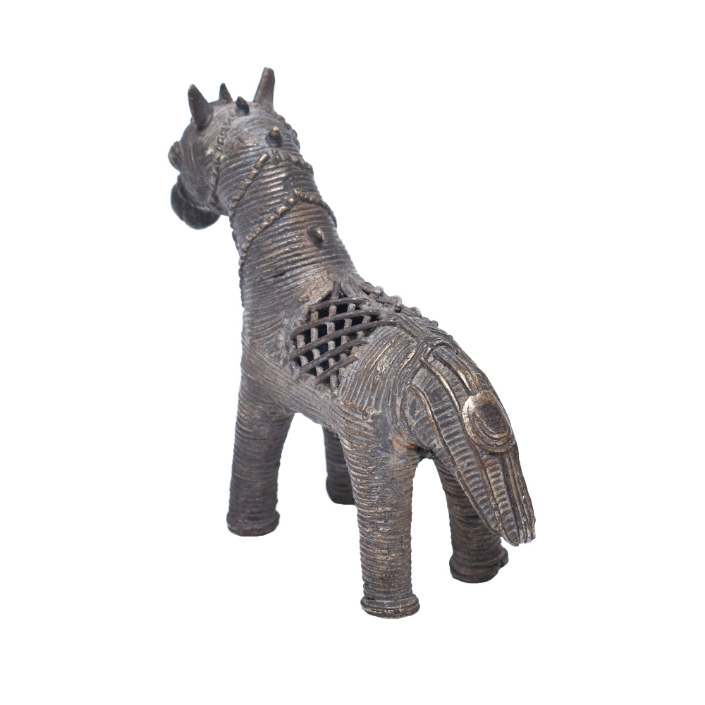 Horse Dhokra animal statue is beautiful and distinctive curio that will complement your decor. Dhokra is a stunning, age-old craft that has been produced using one of India's oldest traditional methods of metal casting for more than 4,000 years. In West Bengal, Madhya Pradesh, Chhattisgarh, and Odisha, metalworkers use the lost wax technique, also known as cire perdue. This craft has roots in the Harappan and Mohenjo-daro Civilizations of prehistory. The unique 13 stage process of Dhokra/Bell metal making, which is entirely handcrafted, is the result of the original craft instinct passed down through the ages. An alloy of brass, nickel, and zinc called "dhokra/bell metal" gives castings an aged appearance.