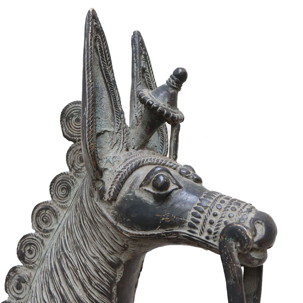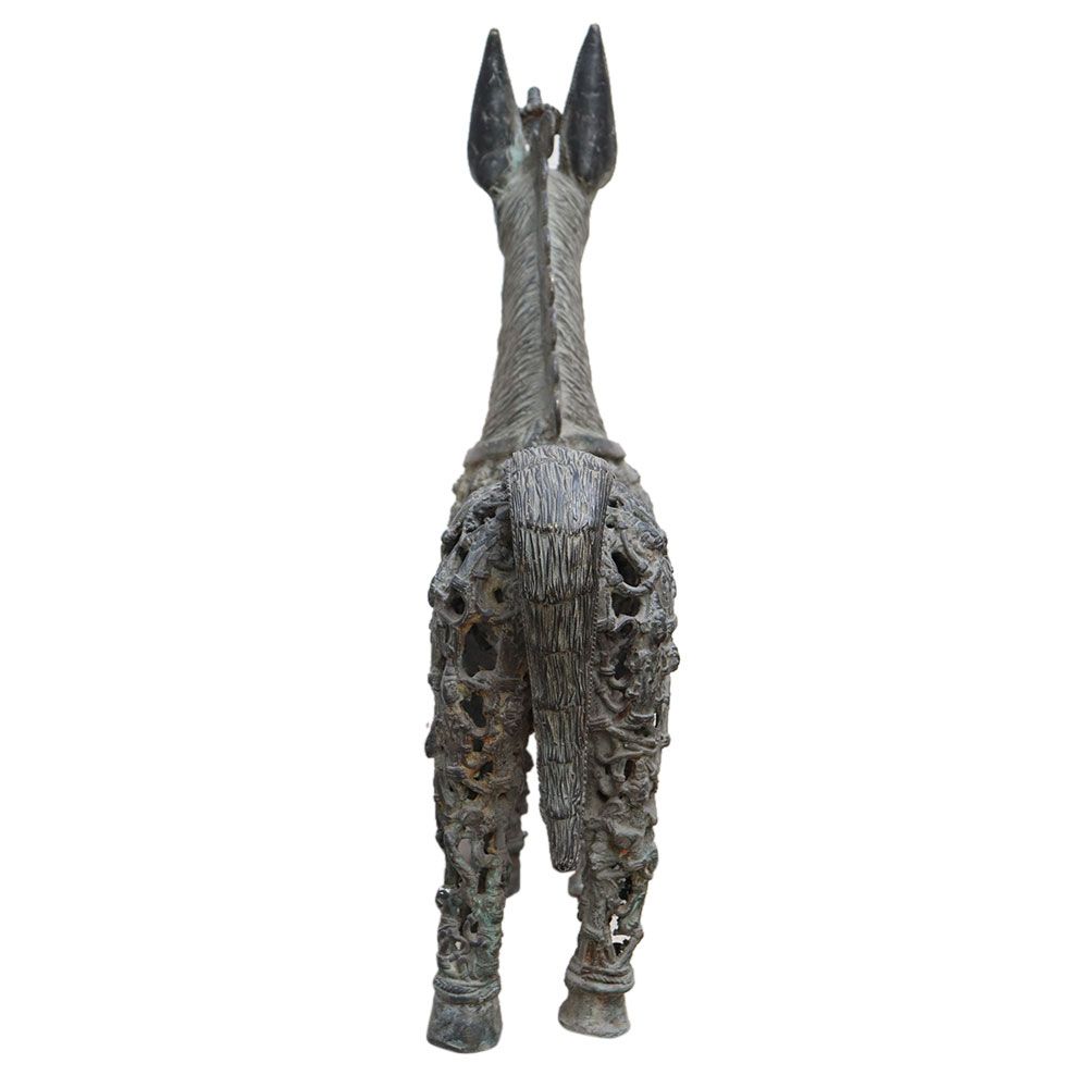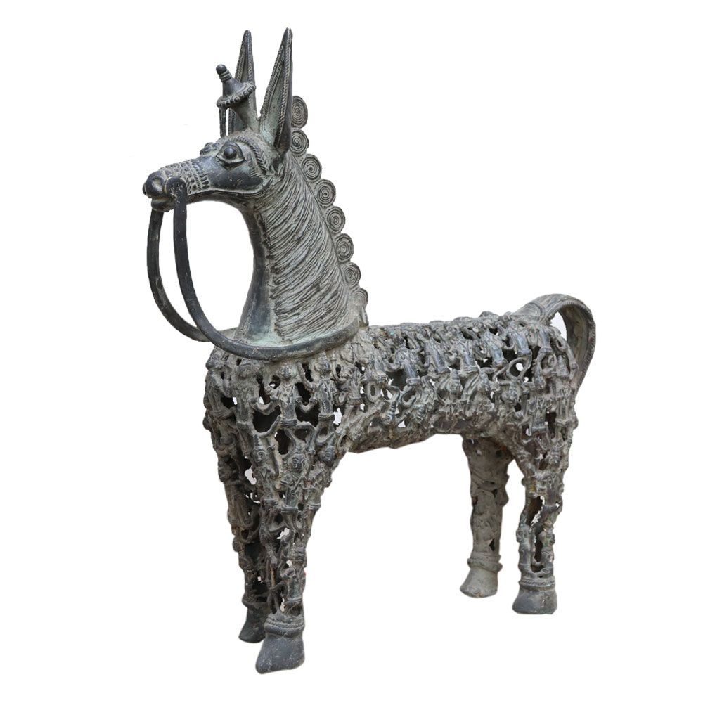 The magnificent brass work creation stands out for its elaborate craftsmanship and attention to detail. The talented artisan's artistic vision is on display through the combination of several deities combining to create the shape of a horse. Other representation of the Horse animal, as well as the other Gods forming the body, add a touch of religious significance and mysticism to this brass masterpiece.