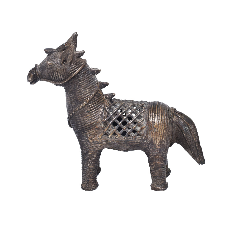 Handmade Metal Folk Horse Statues from Orissa, India are a popular form of folk art. These statues are made by skilled artisans using traditional metal casting techniques passed down through generations. They are made of metal alloys, typically brass or bronze, and feature intricate details and unique designs that reflect the rich cultural heritage of Orissa. The horse statue is a common subject in Orissa folk art, and is often seen as a symbol of power, strength, and freedom. These beautiful and highly collectible pieces make for great decorative items in homes, offices, and museums, and are prized for their beauty, craftsmanship, and cultural significance.